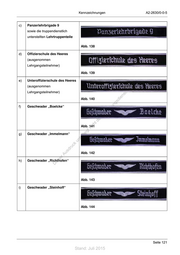 Kennzeichnungen A2-2630/0-0-5 c) Panzerlehrbrigade 9 sowie die truppendienstlich unterstellten Lehrtruppenteile Abb. 138 d) Offizierschule des Heeres (ausgenommen Lehrgangsteilnehmer) Abb. 139 e) Unteroffizierschule des Heeres (ausgenommen Lehrgangsteilnehmer) ! st ie n Abb. 140 ru ng f) Geschwader „Boelcke“ sd de Än em ht d Abb. 141 ni c eg t g) Geschwader „Immelmann“ rli unte ck dr u us Abb. 142 rA h) iese Geschwader „Richthofen“ D Abb. 143 i) Geschwader „Steinhoff“ Abb. 144 Seite 121 Stand: Juli 2015