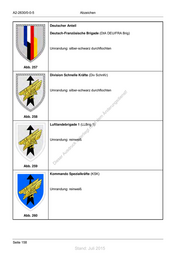 A2-2630/0-0-5 Abzeichen Deutscher Anteil Deutsch-Französische Brigade (DtA DEU/FRA Brig) Umrandung: silber-schwarz durchflochten Abb. 257 Division Schnelle Kräfte (Div SchnKr) Umrandung: silber-schwarz durchflochten ! st ie n ru ng sd de Än Abb. 258 em ht Luftlandebrigade 1 (LLBrig 1)d ni c eg t rli un Umrandung: reinweiß te ck dr u us rA iese D Abb. 259 Kommando Spezialkräfte (KSK) Umrandung: reinweiß Abb. 260 Seite 158 Stand: Juli 2015