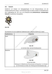 A2-2630/0-0-5 Abzeichen 5.9.4 Abzeichen der Luftwaffe 542. Doppelschwinge mit Eichenlaubumrandung Kopfbedeckung Ausführung Abbildung Schirmmütze Generale: goldfarben, handgestickt; Übrige Offiziere und Oberfähnriche: silberfarben, handgestickt; Unteroffiziere und Mannschaften: hellaltgoldfarben, metallgeprägt. Abb. 318 (hier: hellaltgoldfarben) ! st ie n Trageweise: Über der Mitte des Mützenschirms, Unterkante des Abzeichens ru ng über dem Kinnband. sd de Än em 543. Barettabzeichen ht d ni c Barettfarbe Abzeichen eg t rli unte ck dr u us rA Abb. 319 iese D Marineblau Abb. 320:Objektschutzkräfte Abb. 321:Wachbataillon Abb. 322:Militärmusikdienst Abb. 323:Sanitätstruppe Seite 176 Stand: Juli 2015