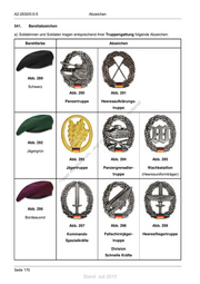 A2-2630/0-0-5 Abzeichen b) Soldatinnen und Soldaten des Militärmusikdienstes tragen je nach Zugehörigkeit das nachfolgende Abzeichen auf Baretts unterschiedlicher Farbe: Barettfarbe Abzeichen Unterschiedlich Abb. 312: Militärmusikdienst c) Soldatinnen und Soldaten, die nachfolgenden Großverbänden zugeordnet sind, tragen diese ! st Abzeichen am marineblauen Barett: ie n ru ng Barettfarbe Abzeichen sd de Än em ht d ni c eg t Abb. 313 rli unte Marineblau ck dr u Abb. 314 us Abb. 315 Abb. 316 rA ie Deutsch- I. Deutsch- Eurokorps se D Französische Niederländisches Brigade Korps Abb. 317 Multinationales Korps Nord-Ost Seite 172 Stand: Juli 2015