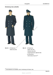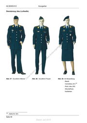 A2-2630/0-0-5 Anzugarten Dienstanzug, blau (Luftwaffe) ! st ie n ru ng sd de Än em ht d ni c eg t rli unte ck dr u us rA iese Abb. 27: Grundform MännerD Abb. 28: Grundform Frauen Abb. 29: mit Abwandlung: - Barett, 102 marineblau (A1) - Rock, blau (A5) - Strumpfhose, hautfarben 102 - Siehe Nr. 543. Seite 48 Stand: Juli 2015