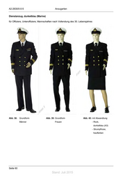 A2-2630/0-0-5 Anzugarten Dienstanzug, dunkelblau (Marine) für Offiziere, Unteroffiziere, Mannschaften nach Vollendung des 30. Lebensjahres ! st ie n ru ng sd de Än em ht d ni c eg t rli unte ck dr u us rA iese D Abb. 38: Grundform Abb. 39: Grundform Abb. 40: mit Abwandlung: Männer Frauen - Rock, dunkelblau (A3) - Strumpfhose, hautfarben Seite 60 Stand: Juli 2015
