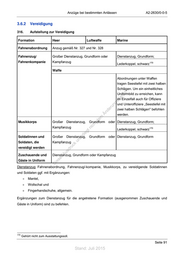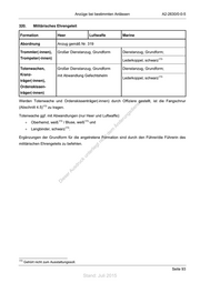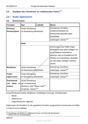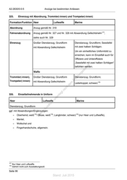 A2-2630/0-0-5 Anzüge bei bestimmten Anlässen 325. Ehrenzug mit Abordnung, Trommler(-innen) und Trompeter(-innen) Formation/Funktion Heer Luftwaffe Marine Abordnung Anzug gemäß Nr. 319 177 Fahnenabordnung Anzug gemäß Nr. 327 und Nr. 328 mit Abwandlung Gefechtshelm ; siehe auch Nr. 329 Ehrenzug Großer Dienstanzug, Grundform Dienstanzug, Grundform; Seestiefel mit Abwandlung Gefechtshelm mit zwei halben Schlägen. Um ein einheitliches Uniformbild zu erreichen, kann im Einzelfall auch für Offiziere und Unteroffiziere „Seestiefel mit zwei halben Schlägen" ! befohlen werden. st ie n Waffe ru ng sd Trommler(-innen), Großer Dienstanzug, Grundform Dienstanzug, Grundform; de Än Trompeter(-innen) mit Abwandlung Gefechtshelm 178 em Lederkoppel, schwarz ht d ni c eg t 326. Einzelteilnehmende in Uniform rli unte Heer Luftwaffe ck Marine dr u Dienstanzug, Grundform us rA ggf. mit Abwandlungen/Ergänzungen: iese 178 178 178 + Oberhemd, weiß D / Bluse, weiß ; Langbinder, schwarz (nur Heer und Luftwaffe), + Mantel, + Wollschal und + Fingerhandschuhe, allgemein. 177 Nur Heer und Luftwaffe. 178 Gehört nicht zum Ausstattungssoll. Seite 96 Stand: Juli 2015