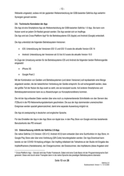 - 13 - Webseite umgesetzt, sodass mit der geplanten Weiterentwicklung der GSB-basierten SafeVac-App weiterhin Synergien genutzt werden. 3.8. Technische Kenndaten der App Die App ist eine Smartphone App als Weiterentwicklung der GSB-basierten SafeVac 1.0 App. Sie kann vom Nutzer somit an jedem Ort flexibel genutzt werden. Die App wendet sich an Impflinge. Die App wird als Cross-Plattform App6 für die Betriebssysteme iOS (Apple) und Android (Google) entwickelt. Die App unterstützt die folgenden Betriebssystem-Versionen: iOS: Unterstützung der Versionen iOS 12 und iOS 13 sowie die aktuelle Version iOS 14 Android: Unterstützung der Versionen ab 5.0 bis 9.0 sowie die aktuelle Version 10.0 Im Zuge der Umsetzung werden für die Betriebssysteme iOS und Android die folgenden beiden Referenzgeräte eingesetzt: iPhone XS Google Pixel 2 Mit der Kombination von Geräten und Betriebssystemen (und deren Versionen) soll repräsentativ eine Menge abgedeckt werden, die der tatsächlichen Verbreitung der Geräte entspricht. Es soll sichergestellt werden, dass der größte Teil der Nutzer die App exakt so sieht, wie sie konzipiert wurde. Auf anderen Smartphones und Betriebssystemversionen kann es zu Abweichungen zur Konzeptionsreferenz kommen. Die mit der App erfassten Daten werden über eine noch zu implementierende Schnittstelle von den Servern des ITZBund in die PEI-Nebenwirkungsdatenbank geschrieben. Die aus der App stammenden unerwünschten Ereignisse werden speziell gekennzeichnet, damit eine separate Auswertung möglich ist. Die App ist zweisprachig in deutscher und englischer Sprache. Für das Einstellen der App in den App Store von Apple bzw. in den Play Store von Google wird das bestehende Benutzerkonto des PEI erneuert. 3.9. Datenerfassung mithilfe der SafeVac 2.0-App Die native SafeVac 2.0 (Version: iOS ≥12, Android ≥5.0) kann entweder über eine Suchfunktion im App Store, im Google Play Store oder über eine Verlinkung (QR-Code) heruntergeladen werden. Der App-Download kann bereits vor der COVID-19-Impfung erfolgen. Der Impfling initialisiert die Teilnahme an der Studie mit Eingabe des Impfstoffnamens (Handelsname), der Chargennummer, der Dosisnummer, des Impfdatums (diese Angaben sind 6 Cross-Plattform App – Genutzt wird das Flutter Framework. Dabei wird eine Code Basis mit der Programmiersprache Dart generiert. Diese wird durch einen Transpiler dann in die native Sprache des jeweiligen Betriebssystems übersetzt. Seite 13 von 26 SafeVac 2.0 Studienprotokoll, Version 1.1, 13.12.2020