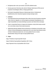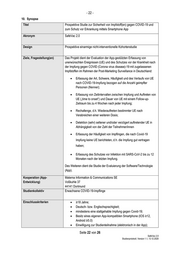 - 20 - Die Ergebnisse sollen in einem „peer-reviewed“ Journal (PEI) veröffentlicht werden. Die daraus gewonnenen Erkenntnisse sollen zeitnah der Ständigen Impfkommission (STIKO) sowie der europäischen Arzneimittelagentur (EMA) zur Verfügung gestellt werden. Das Konzept der App-gestützten Erfassung von Nebenwirkungen könnte zur Verbesserung der Impfstoffsicherheit auf alle in Deutschland angebotene Impfungen übertragen werden. 7. Limitationen Da die Datenerhebung keine personenbezogenen Daten umfasst, können keine Informationen nacherhoben werden. Damit ist es, abgesehen von in die App integrierten automatisierten Plausibilitätschecks, nicht möglich Implausibilitäten durch Queries (Nachfragen) auszuräumen oder fehlende Werte nachzutragen. Unklar ist, inwieweit ältere Personen im Umgang mit der Smartphone- und App-Technik vertraut und bereit sind, an einer Studie, die diese Technik einsetzt, teilzunehmen. Möglicherweise fällt besser gebildeten Personen die Benutzung von Smartphones und App leichter, sodass Personen mit höherem Bildungsabschluss möglicherweise eher an einer solchen Studie teilnehmen würden. Ein Risiko für Selektionsbias bestünde dann, wenn besser gebildete Personen ein anderes Berichtsverhalten in Bezug auf UE zeigen als weniger gebildete Personen. 8. Anlagen Anlage 1 PEI-SafeVac-2.0-App-Konzept-2020-10-05.pdf Anlage 2 03-SafeVacV2-App-Spezifikation-Eingabefelder_2020-11-28.xlsx Anlage 3 Ergänzende Texte zur App Spezifikation 2020-12-22.pdf Seite 20 von 26 SafeVac 2.0 Studienprotokoll, Version 1.1, 13.12.2020