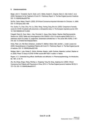 - 21 - 9. Literaturverzeichnis Beigel, John H.; Tomashek, Kay M.; Dodd, Lori E.; Mehta, Aneesh K.; Zingman, Barry S.; Kalil, Andre C. et al. (2020): Remdesivir for the Treatment of Covid-19 - Preliminary Report. In: The New England journal of medicine. DOI: 10.1056/NEJMoa2007764. Del Rio, Carlos; Malani, Preeti N. (2020): 2019 Novel Coronavirus-Important Information for Clinicians. In: JAMA. DOI: 10.1001/jama.2020.1490. Fan, Guohui; Tu, Chao; Zhou, Fei; Liu, Zhibo; Wang, Yeming; Song, Bin et al. (2020): Comparison of severity scores for COVID-19 patients with pneumonia: a retrospective study. In: The European respiratory journal. DOI: 10.1183/13993003.02113-2020. Folegatti, Pedro M.; Ewer, Katie J.; Aley, Parvinder K.; Angus, Brian; Becker, Stephan; Belij-Rammerstorfer, Sandra et al. (2020): Safety and immunogenicity of the ChAdOx1 nCoV-19 vaccine against SARS-CoV-2: a preliminary report of a phase 1/2, single-blind, randomised controlled trial. In: The Lancet 396 (10249), S. 467– 478. DOI: 10.1016/S0140-6736(20)31604-4. Horby, Peter; Lim, Wei Shen; Emberson, Jonathan R.; Mafham, Marion; Bell, Jennifer L.; Linsell, Louise et al. (2020): Dexamethasone in Hospitalized Patients with Covid-19 - Preliminary Report. In: The New England journal of medicine. DOI: 10.1056/NEJMoa2021436. Mulligan, Mark J.; Lyke, Kirsten E.; Kitchin, Nicholas; Absalon, Judith; Gurtman, Alejandra; Lockhart, Stephen et al. (2020): Phase 1/2 study of COVID-19 RNA vaccine BNT162b1 in adults. In: Nature. Rogers, A. S.: Unintended drug effects: Identification and attribution. In: Pharmacoepidemiology: An Introduction, Bd. 1991, S. 64–74. Zhu, Na; Zhang, Dingyu; Wang, Wenling; Li, Xingwang; Yang, Bo; Song, Jingdong et al. (2020): A Novel Coronavirus from Patients with Pneumonia in China, 2019. In: The New England journal of medicine 382 (8), S. 727–733. DOI: 10.1056/NEJMoa2001017. Seite 21 von 26 SafeVac 2.0 Studienprotokoll, Version 1.1, 13.12.2020