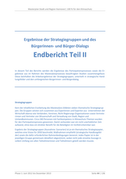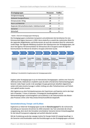 Masterplan Stadt und Region Hannover| 100 % für den Klimaschutz Ergebnisse der Strategiegruppen und des Bürgerinnen- und Bürger-Dialogs Endbericht Teil II In diesem Teil des Berichts werden die Ergebnisse des Partizipationsprozesses sowie die Er- gebnisse aus im Rahmen des Masterplanprozesses beauftragten Studien zusammengefasst. Diese beinhalten die Arbeitsergebnisse der Strategiegruppen, unterteilt in strategische Hand- lungsfelder und den umfangreichen Bürgerinnen- und Bürgerdialog. Strategiegruppen Kern der inhaltlichen Erarbeitung des Masterplans bildeten sieben thematische Strategiegrup- pen. Die Gruppen setzten sich zusammen aus Expertinnen und Experten aus Unternehmen der Wirtschaft ebenso wie Verbänden, Vereinen, Nicht-Regierungs-Organisationen sowie Vertrete- rinnen und Vertreter von Wissenschaft und Verwaltung von Stadt, Region und Umlandkommunen. Circa 240 Personen mit Fachkompetenz in Klimaschutz-Themen wurden für den Partizipationsprozess gewonnen. Damit verbunden war ein nicht unerheblicher Zeit- aufwand, ohne dass ein direkter Benefit für die Beteiligten im Vorfeld erkennbar war. Ergebnis der Strategiegruppen (Ausnahme: Szenarien) ist je ein thematisches Strategiepapier, welches eine Vision für 2050 beschreibt, Maßnahmen empfiehlt (strategische Handlungsfel- der) sowie die dafür erforderlichen Rahmenbedingungen benennt. Jedes Papier ist in der jeweiligen Gruppe gemeinsam detailliert abgestimmt, wobei nicht jede einzelne Aussage in vollem Umfang von allen Teilnehmerinnen und Teilnehmern geteilt werden musste. Phase 1: Juni 2012 bis Dezember 2013 Seite 44 | 136