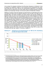 Klimaschutzziel und -strategie München 2050 - Endbericht Exkurs: Umrechnung der für Deutschland definierten Minderungsziele für München Die in den Klimaschutzszenarien bundesweit dargestellten Ziele von -80 % (Szenario KS80) bzw. -95 % (Szenario KS95) Emissionsminderung gegenüber 1990 umfassen die Emissionen aller Sektoren, darunter direkte Emissionen aus der Land- und Abfallwirtschaft, Emissionen aus Industrieprozessen und flüchtige Emissionen aus der Energieumwandlung, zusammengefasst als nicht-energiebedingte Emissionen. Somit setzt sich das im Zieljahr verbleibende Emissions- budget aus den genannten nicht-energiebedingten Emissionen auf der einen Seite und den energiebedingten Emissionen auf der anderen Seite zusammen. Die energiebedingten Emissionen enthalten die Emissionen aus den Energieverbrauchssektoren Energiewirtschaft, Industrie, GHD, Haushalte und Verkehr. Im Szenario KS80 beträgt der Anteil der energie- bedingten Emissionen an den im Jahr 2050 verbleibenden Emissionen noch 53 %; im Szenario KS 95 sind es dagegen nur noch 25 %. Das heißt, das noch zur Verfügung stehende jährliche Emissionsbudget wird fast vollständig von den nicht-energiebedingten Emissionen aufgezehrt, für die energiebedingten Emissionen verbleiben nur etwa 25 % (vgl. Abbildung 5-2). Werden nun die Emissionsziele auf eine Kommune übertragen, so sollte berücksichtigt werden, dass auf dem betrachteten Gebiet der Kommune nicht-energiebedingte Emissionen entweder nicht auftreten oder in der kommunalen CO2-Bilanz nicht bilanziert werden. Daher werden die nicht-energiebedingten Emissionen vom bundesweiten Budget abgezogen und das kommunale Emissionsziel bezieht sich nur noch auf die energiebedingten Emissionen. Diese müssen aus den beschriebenen Gründen noch stärker reduziert werden als die nicht-energiebedingten Emissionen. Die Umrechnung der absoluten Minderungen in Pro-Kopf-Minderungen erfolgt durch Umrechnung der bundesweiten absoluten energiebedingten Emissionen in bundesweite Pro- Kopf-Emissionen auf der Basis der für das Zieljahr prognostizierten Bevölkerungszahl. In den Klimaschutzszenarien sind es bundesweit 74 Mio. Einwohner im Jahr 2050. Diese Pro-Kopf- Minderungen gelten auch für die Münchner Bevölkerung. Sie wurden als Ziel für die Szenariorechnungen übernommen. (vgl. auch Tabelle 5-1). Abbildung 5-2: Entwicklung der Emissionen unterteilt nach nicht-energiebedingten (prozess-bedingte) und energiebedingten Emissionen in den bundesweiten Klimaschutzszenarien -95% -80% Emissionen gesamt nur energiebe- dingte Emissionen -89,5% -98,5% 44