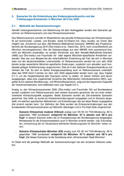 Klimaschutzziel und -strategie München 2050 - Endbericht 5. Szenarien für die Entwicklung des Endenergieverbrauchs und der Treibhausgas-Emissionen in München 2014 bis 2050 5.1. Methodik der Szenariorechnungen Gemäß Leistungsverzeichnis und Abstimmung mit dem Auftraggeber wurden drei Szenarien ge- rechnet: ein Referenzszenario und zwei Klimaschutzszenarien. Das Referenzszenario schreibt im Wesentlichen das aktuelle Ambitionsniveau der Klimaschutzpoli- tik auf kommunaler, Landes- und Bundes- sowie EU-Ebene fort. Dazu wurden, wo immer dies möglich war, Annahmen aus dem „Mit-Weiteren-Maßnahmen-Szenario“ (MWMS) des Projektions- berichts der Bundesregierung 2015 (Öko-Institut et al., Stand Dez. 2015, noch unveröffentlicht) auf München heruntergebrochen. War die Datengrundlage aus dem MWMS nicht ausreichend bzw. nicht auf München anwendbar, so wurden Annahmen aus dem Aktuelle-Maßnahmen-Szenario (AMS) aus Öko-Institut und Fraunhofer ISI oder eigene München-spezifische Annahmen ver- wendet. Dies war zum Beispiel bei der wirtschaftlichen Entwicklung der Fall, die sich in München stark von der deutschlandweiten unterscheidet. Im Referenzszenario werden bis zum Jahr 2050 bereits einige wesentliche München-spezifische Änderungen, zusätzlich zum aktuellen auch bun- desweit gültigen Ambitionsniveau angenommen. Dies ist in den Sektoren Energieumwandlung und Verkehr der Fall. So wird im Sektor Energieumwandlung auch im Referenzszenario unterstellt, dass das HKW Nord 2 bereits vor dem Jahr 2030 abgeschaltet werden kann (vgl. dazu Kapitel 5.7.1), um die Vergleichbarkeit aller Szenarien sicher zu stellen. Im Sektor Verkehr wird davon ausgegangen, dass eine ungebremste Zunahme des Motorisierten Individualverkehrs (MIV), aus- gelöst durch weiteres Bevölkerungs- und Wirtschaftswachstum, aufgrund der begrenzten Kapazität der Verkehrsinfrastruktur nicht stattfinden kann (vgl. Kapitel 5.6.1). Analog zu den Klimaschutzszenarien 2050 (Öko-Institut und Fraunhofer ISI) auf Bundesebene wurden zusätzlich zum Referenzszenario zwei weitere Szenarien gerechnet, die von einer ambiti- onierteren Klimaschutzpolitik ausgehen. Beide Szenarien wurden als Ziel-orientierte Szenarien gerechnet. Das heißt, es wurde ein Emissionsminderungsziel vorgegeben und im Szenario darge- stellt, mit welchen spezifischen Maßnahmen und Entwicklungen das auf diese Weise vorgegebene Ziel erreicht werden kann. Zur Definition der Ziele wurden die Emissionsminderungen aus den bundesweiten Klimaschutzszenarien auf München übertragen und in Pro-Kopf-Ziele umgerechnet. - Szenario Klimaschutz moderat (KSmod) analog zum KS 80 mit THG-Minderung -80 % gegenüber 1990 bundesweit, entspricht für München -81 % absolut und -89 % pro Kopf. In diesem Szenario sollen die im Energiekonzept der Bundesregierung festgelegten Mindestziele für die Emissionsreduktion auch in München erreicht werden. (vgl. Exkurskas- ten „Umrechnung der für Deutschland definierten Minderungsziele für München“ weiter un- ten) - Szenario Klimaneutrales München (KN) analog zum KS 95 mit THG-Minderung -95 % gegenüber 1990 bundesweit: entspricht für München -97 % absolut und -98 % pro Kopf; Ziel dieses Szenarios ist die Darstellung einer „klimaneutralen Stadt München“. Im Detail wird die jeweilige Methodik der Szenariorechnungen bei den einzelnen Sektoren erläu- tert. 42