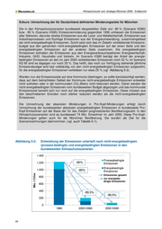Klimaschutzziel und -strategie München 2050 – Endbericht - Quelle der Sanierungsraten: o Im Referenzszenario: Sanierungsraten 2009 bis 2035 aus dem Mit-weiteren- Maßnahmen Szenario (MWMS) des Projektionsberichts 2015 (Öko-Institut et al, noch unveröffentlicht), post-2035 aus den Klimaschutzszenarien (Öko-Institut und Fraunhofer ISI) o In den Szenarien Klimaschutz moderat und Klimaneutrales München: aus den Klima- schutzszenarien (Öko-Institut und Fraunhofer ISI) - Für die BAK bis 1918 und 1919 - 1945 wird ein „unsanierbarer Anteil“ an der Wohnfläche der jeweiligen BAK von 20 % festgelegt, um dem Denkmalschutz Rechnung zu tragen. Für die BAK von 1949 bis 1994 bleibt ein „unsanierbarer Anteil“ von 5 %, bei jüngeren BAK sind prinzipiell alle Gebäude sanierbar. - Für die Fortschreibung der Energieträgerverteilung im Anwendungsbereich Raumwärme wurden an die LH München angepasste Varianten der bundesweiten Klimaschutzszenarien 2050 verwendet (Öko-Institut und Fraunhofer ISI). Tabelle 5-4: Durchschnittlichen Endenergieverbräuche in Neubauten in kWh/(m²*a) bezogen auf die Wohnfläche (ungefähre KfW-Effizienzhausstandards mit Bezug auf EnEV 2009 in Klammern) Ab 2016 Ab 2021 Ab 2031 Referenzszenario 70 55 (KfW-70) 40 (KfW-55) Szenario Klimaschutz moderat 70 45 (KfW-55) 35 (KfW-40) Szenario Klimaneutrales München 70 35 (KfW-40) 15 (Passivhaus) Quelle: Annahmen Öko-Institut Tabelle 5-5: Sanierungsraten Ab 2016 Ab 2021 Ab 2031 Ab 2041 % / a des Gebäudebestands in der jeweiligen BAK Referenzszenario 2,1 1,8 1,8 2,0 Szenario Klimaschutz mode- 1,3 1,8 2,4 3,1 rat Szenario Klimaneutrales 1,4 2,8 3,7 3,9 München Quelle: Projektionsbericht 2015 (Öko-Institut et al, noch unveröffentlicht, Öko-Institut und Fraunhofer ISI , sowie Annahmen Öko-Institut, BAK=Baualtersklasse 49