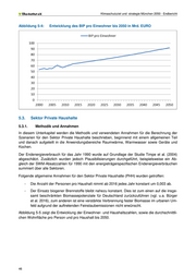 Klimaschutzziel und -strategie München 2050 - Endbericht Abbildung 5-4: Entwicklung des BIP pro Einwohner bis 2050 in Mrd. EURO 5.3. Sektor Private Haushalte 5.3.1. Methodik und Annahmen In diesem Unterkapitel werden die Methodik und verwendeten Annahmen für die Berechnung der Szenarien für den Sektor Private Haushalte beschrieben, beginnend mit einem allgemeinen Teil und danach aufgeteilt in die Anwendungsbereiche Raumwärme, Warmwasser sowie Geräte und Kochen. Der Endenergieverbrauch für das Jahr 1990 wurde auf Grundlage der Studie Timpe et al. (2004) abgeschätzt. Zusätzlich wurden jedoch Plausibilisierungen durchgeführt, beispielsweise ein Ab- gleich der SWM-Absatzzahlen für 1990 mit den energieträgerspezifischen Endenergieverbräuchen summiert über alle Sektoren. Folgende allgemeine Annahmen für den Sektor Private Haushalte (PHH) wurden getroffen: - Die Anzahl der Personen pro Haushalt nimmt ab 2016 jedes Jahr konstant um 0,003 ab. - Der Einsatz biogener Brennstoffe bleibt nahezu konstant. Dies ist zum einen auf die insge- samt beschränkten Biomassepotenziale für Deutschland zurückzuführen (vgl. u.a. Bürger et al. 2016), zum anderen ist eine verstärkte Verbrennung fester Biomasse im urbanen Um- feld aufgrund der auftretenden Feinstaubemissionen nicht erwünscht. Abbildung 5-5 zeigt die Entwicklung der Einwohner- und Haushaltszahlen, sowie die durchschnittli- chen Wohnfläche pro Person und pro Haushalt bis 2050. 46