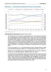 Klimaschutzziel und -strategie München 2050 – Endbericht Abbildung 5-5: Entwicklung der Wohnfläche pro Einwohner und pro Haushalt Quelle: Berechnung Öko-Institut Anwendungsbereich Raumwärme: Basisjahre 1990 und 2012 - Die Charakterisierung des Münchner Gebäudebestands, d.h. die Aufteilung der Wohnflä- che auf Gebäudetypen und Baualtersklassen (BAK), erfolgt auf der Basis der Ergebnisse des Wärmekatasters (Steinert und Rebitzer 2015). Hierfür wurde der auf der Bruttoge- schossfläche (BGF) basierende rechnerische Endenergiebedarf im Wärmekataster umge- rechnet in einen Wohnflächen-basierten Endenergieverbrauch. Dazu wurden anteilig zur Gesamtwohnfläche die relativen Bruttogeschossflächen der verschiedenen Gebäudetypen und Baualtersklassen in Wohnflächen umgerechnet (Zahlen des RGU auf Basis des statis- tischen Landesamts). Zur Umrechnung von Bedarfs- auf Verbrauchswerte vgl. (Loga et al. 2015). - Es wird unterschieden in Ein- und Zweifamilienhäuser (EZFH), Mehrfamilienhäuser (MFH) und Große Mehrfamilienhäuser (GMH) und in 13 Baualtersklassen (BAK); vgl. Tabelle 5-3 - Basisjahr für die Quantifizierung des Raumwärmeverbrauchs der Privaten Haushalte ist das Jahr 2012, da das Wärmekataster im Mittel auf diesem Jahr basiert. - In die Bestimmung des Gebäudetyp-spezifischen Endenergieverbrauchs werden zudem die Ergebnisse des aktuellen Münchner Heizspiegels (Jahnke und Jank 2016) einbezogen; hierfür wurden vereinfacht die drei Größenkategorien des Heizspiegels (100-250m², 251- 1000m², >1000m²) auf die drei Gebäudetypen EZFH, MFH und GMH umgelegt. Die Auftei- lung des Endenergieverbrauchs auf die jeweiligen BAK erfolgte über die errechneten Ener- gieverbrauchswerte des Wärmekatasters der betroffenen BAKs. 47