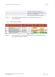 Die Maßnahmenvorschläge nach Handlungsfeldern 45 Öffentliches Projektportal Klimaschutz Klimaschutz-Grundlagen zielgruppengerecht aufbereiten und visualisieren Einsatz Social Media Plattformen ausbauen Tabelle 4-11 Liste der Maßnahmen und Teilmaßnahmen im Handlungsfeld Koordination und übergreifende Projekte 4.6.4 Bewertung im Überblick Punkte Punkte Laufzeit THG - Punkte Gesamt- CO2- Punkte Kosten- KP Koordination und übergreifende Projekte der Einsparung Hebelwirku kosten (€) Minderungs Priorität Nutzen- Maßnahme (t/a) ng potenzial Verhältnis Regionale und überregionale Zusammenarbeit im KP1 2021 - 2030 0 10.000 € 2 - 3 - Bereich Klimaschutz Dezernatsübergreifende Organisationsstruktur für KP2 2021 - 2030 0 40.000 € 3 - 4 - integrierte Zusammenarbeit im Klimaschutz KP3 Konzeption "Klimaneutrale Verwaltung" 2021 - 2023 124 75.000 € 3 1 3 2 KP4 Machbarkeitsstudie Digitalisierung und Klimaschutz 2022 - 2023 0 30.000 € 1 - 2 - KP5 Klimaverträglichkeitsprüfung für Ratsbeschlüsse 2021 - 2030 0 30.000 € 3 - 3 - Kontinuierliche Öffentlichkeitsarbeit KP6 2021 - 2030 10.126 1.050.000 € 5 4 5 5 „Positives Entscheidungsklima für Klimaschutz in Summe 10.250,0 1.235.000 € Tabelle 4-12 Kosten, Einsparpotenziale und Bewertung der Maßnahmen im Handlungsfeld Kooperation und übergreifende Projekte im Überblick Bericht_Massnahmenkatalog 2030_Stand_2019_08_26-final_JS.docx Stand: 02.09.2019 17:43:00