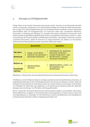 46 Handlungsprogramm Klimaschutz 2030 5 Konzept zur Erfolgskontrolle Erfolge sollten im kommunalen Klimaschutz dokumentiert werden. Einerseits um die Wirksamkeit der Maß- nahmen zu überprüfen, andererseits um mit dokumentierten Erfolgen die Vorteile der lokalen Klimaschutzar- beit zu zeigen. Eine solche Erfolgskontrolle kann auf verschiedenen Ebenen stattfinden und hat entsprechend unterschiedliche Ziele und Aussagewirkungen. Für Kommunen stehen dazu verschiedenen Monitoring- Instrumente zur Verfügung (vgl. Abbildung 5-1). Prinzipiell wird zwischen quantitativen Instrumenten, durch welche konkrete Einspareffekte dargestellt werden können, und qualitativen Instrumenten, welche v.a. weite- re Auswirkungen der Klimaschutzarbeit und Maßnahmen beschreiben, unterschieden. Zudem kann zwischen „Top-down“-)nstrumenten, welche die Kommune als Ganzes betrachten und „Bottom up“-Instrumenten, welche die Klimaschutzmaßnahmen einzeln untersuchen, differenziert werden. Abbildung 5-1: Übersicht über die verschiedenen Elemente eines umfassenden Klimaschutz-Monitorings THG-Bilanzen und die Indikatoren dienen als wichtiges quantitatives kommunales Monitoring-Instrument, um langfristige Entwicklungen bei den Treibhausgasemissionen einer Kommune aufzeigen zu können. Neben der konkreten Klimaschutzarbeit der Stadt können jedoch auch andere Faktoren Auswirkungen auf die Energie- und THG-Bilanz der Stadt haben (vgl. Abbildung 5-2). Ein Monitoring der Klimaschutzarbeit der Stadt kann deswegen durch eine Energie- und THG-Bilanz nicht dargestellt werden. Soll ein umfassendes Klimaschutz-Monitoring der Klimaschutzarbeit erfolgen, wird empfohlen, alle durchge- führten Maßnahmen von Beginn an mit entsprechenden Umsetzungszielen zu versehen, diese zu messen und mit Erfolgsindikatoren zu hinterlegen. Für die Stadt Münster wurde für alle Maßnahmen und Teilmaßnahmen ein Monitoring-Set entwickelt, welches im Folgenden beschrieben wird.