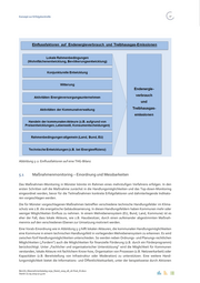 Konzept zur Erfolgskontrolle 47 Abbildung 5-2: Einflussfaktoren auf eine THG-Bilanz 5.1 Maßnahmenmonitoring – Einordnung und Messbarkeiten Das Maßnahmen-Monitoring in Münster könnte im Rahmen eines mehrstufigen Verfahrens erfolgen. In den ersten Schritten soll die Maßnahme zunächst in die Handlungsmöglichkeiten und das Top-down-Monitoring eingeordnet werden, bevor für die Teilmaßnahmen konkrete Erfolgsfaktoren und dahinterliegende Indikato- ren vorgeschlagen werden. Die für Münster vorgeschlagenen Maßnahmen betreffen verschiedene technische Handlungsfelder im Klima- schutz wie z.B. die energetische Gebäudesanierung. In diesen Handlungsfeldern haben Kommunen mehr oder weniger Möglichkeiten Einfluss zu nehmen. In einem Mehrebenensystem (EU, Bund, Land, Kommune) ist es eher der Fall, dass lokale Akteure, wie z.B. Hausbesitzer, durch einen aufeinander abgestimmten Maßnah- menmix auf den verschiedenen Ebenen zur Umsetzung motiviert werden. Eine Vorab-Einordnung wie in Abbildung 5-3 hilft lokalen Akteuren, die kommunalen Handlungsmöglichkeiten eine Kommune in einem technischen Handlungsfeld in vorliegenden Mehrebenensystem zu erkennen. Es wird zwischen fünf Handlungsmöglichkeiten unterschieden. So werden neben Ordnungs- und Planungs-rechtlichen Möglichkeiten „Fordern“ auch die Möglichkeiten für finanzielle Förderung z.B. durch ein Förderprogramm) berücksichtigt. Unter „Fachlicher und organisatorischer Unterstützung“ wird die Möglichkeit für Kommunen verstanden, lokale Akteure mit fachlichem Know-how, Organisation von Prozessen (z.B. Netzwerkarbeit) oder Kapazitäten (z.B. Bereitstellung von Infrastruktur oder Moderation) zu unterstützen. Eine weitere Hand- lungsmöglichkeit bietet die Informations- und Öffentlichkeitsarbeit, unter der beispielsweise durch Aktionen Bericht_Massnahmenkatalog 2030_Stand_2019_08_26-final_JS.docx Stand: 02.09.2019 17:43:00