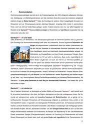 7 Kommunikation Die Kommunikationsstrategie baut auf der in der Erarbeitungsphase des IKKK erfolgreich aufgebauten Informati- ons-, Beteiligungs- und Marketingmaßnahmen auf. Das erworbene Know-How sowie das inzwischen weitgehend etablierte Image der Marke Saerbeck plus bilden die Grundlage der weiteren Arbeit. Ausgeklügelte Konzepte zum Klimaschutz und zur Klimaanpassung werden allerdings Makulatur, ehrgeizige Ziele rücken in unerreichbare Ferne, wenn sie nicht auf breiter Basis getragen werden. Andere anstecken kann nur, wer selbst begeistert ist: Deshalb ist die Saerbeck plus-Kommunikationsstrategie im Wesentlichen auf zwei Ebenen angesiedelt, die eng miteinander verbunden sind. Saerbeckplus – wir sind dabei 7250 Ja-Stimmen zum Klimaschutz- und Klimaanpassungskonzept der Gemeinde Saerbeck sind zu gewinnen. Eine Grundlage der Kommunikationsstrategie stellt daher die umfassende, Prozess begleitende Information der Bürger (mit eingeschlossen Landwirtschaft, kleine und mittlere Unternehmen) dar, die den Weg der Gemeinde zur klimaneutralen Kommune transparent macht, eine hohe Identifikation erreicht und gleichzeitig Handlungsmöglichkeiten aufzeigt, mit Maßnahmen zur Energieeffizienz und dem Einsatz erneuerbarer Energien Klima- schutz konkret vor Ort und sofort zu praktizieren. Dazu werden regelmäßig die ört- lichen Medien eingebunden und auch das Internet als Informationsplattform ge- nutzt. Wir setzen aber daneben insbesondere auf den persönlichen Kontakt (Saer- beckplus -Klimagespräche), niederschwellige Beratungsangebote (Saerbeckplus -Energieberatung und –Energie- stammtisch), denken Generationen übergreifend und nutzen die gewachsenen, örtlichen Kommunikationsstruktu- ren durch das Einbinden der Kirchengemeinden, Vereine, Verbände und Institutionen. Einzelne Aktionen (Ener- giesparlampenkampagne) und gute Beispiele „aus der Nachbarschaft“ wecken Begeisterung und machen neugie- rig auf „mehr“ (vgl. Handlungsfelder Bildung/Transfer/Bürgermitwirkung und Marketing/Öffentlichkeitsarbeit). Mit Saerbeckplus ist eine ganze Gemeinde auf dem Weg zur klimaneutralen Kommune – und dieses Bild, gilt es nach außen zu tragen. Saerbeckplus – wir stecken an Was in Saerbeck funktioniert, ist übertragbar auf andere Städte und Gemeinden. Saerbeck plus steht deshalb auch für die positive Ausstrahlung in den Kreis, die Region, überregional und über die Landesgrenzen hinaus. Die Ge- meinde soll wahrgenommen werden als innovative Kommune mit Modellcharakter, der es gelingt, mit zu- kunftsweisenden Konzepten Klimaschutz und Klimaanpassung erfolgreich zu praktizieren. Dazu werden wir die Internetplattform nutzen, in regionalen und überregionalen Printmedien präsent sein, die Fachpresse aufmerksam machen, punktuell Rundfunk und Fernsehen einschalten, über Messen, Ausstellungen und Fachtagungen persön- liche Kontakte knüpfen. Mit den „Saerbecker Einsichten“ und dem Energie-Erlebnis-Park (ab 2011 auf dem ehe- maligen Munitionsdepot) entwickeln sich Instrumente, die Neugier und Begeisterung für den zukunftsweisenden Einsatz erneuerbarer Energien (Energieerlebnispfad) verbinden mit Forschung und Wissenstransfer auf hohem Niveau (Wissenspark) und darauf zielen, auch und gerade Kinder und Jugendliche für die Themenbereiche Kli- 44