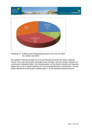 Abbildung 15: Aufteilung des Endenergieverbrauchs 2010 auf die Sekto- ren (Verkehr wie 2007) Den größten Verbraucher stellt mit 35 % des Energieverbrauchs der Sektor „Kleinver- brauch“ dar, in den die privaten Haushalte sowie sonstige, nicht den übrigen Sektoren zu- zuordnende Verbräuche fallen. Der Verkehrssektor und der Sektor Industrie und Gewerbe zeigen sich zu 30 % beziehungsweise 24 % am Energieverbrauch verantwortlich. Auf den Sektor öffentliche Einrichtungen entfallen etwa 11 % des Gesamtenergieverbrauchs. Seite 41 von 195
