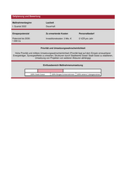 Zeitplanung und Bewertung Maßnahmenbeginn Laufzeit I. Quartal 2022 Dauerhaft Einsparpotenzial Zu erwartende Kosten Personalbedarf Potenzial bis 2030: Investitionskosten: 3 Mio. € 0 VZÄ pro Jahr 1.930 t/a Priorität und Umsetzungswahrscheinlichkeit Hohe Priorität und mittlere Umsetzungswahrscheinlichkeit (Priorität liegt auf dem Einsatz erneuerbarer Energieträger, Synergieeffekte zu erwarten; Strukturen durch Stadtwerke Soest/ Stadt Soest zu etablieren, Umsetzung von Projekten von weiteren Akteuren abhängig) Einflussbereich Maßnahmenumsetzung