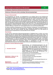 Leasing-Angebot der Stadtwerke für Wärmepumpen 2.11 ➢ Zielgruppe: BürgerInnen, Betriebe und Unternehmen Zielsetzung: Erhöhung des Anteils nachhaltiger Wärmeerzeugungsanlagen Bezug zur Klimaneutralität Die Energieeffizienz der Heizungs- und Anlagentechnik ist ein wichtiger Faktor bei der Ermittlung des endenergetischen Bedarfs, denn es ist entscheidend, durch welche Energieträger oder andere Quellen (Gas, Öl, Umweltwärme, Solarstrahlung, etc.) der Bedarf gedeckt wird. 2011 waren in Deutschland rund 21,3 Mio. Wärmeerzeuger installiert; 10,5 Mio. davon sind Gasheizkessel, weitere sechs Mio. Anlagen sind Öl- Heizkessel. Der Gebäudebestand ist somit wesentlich durch gas- und ölbefeuerte Verbrennungssysteme gekennzeichnet, die einen hohen Primärenergiebedarf aufweisen. Dabei kann der Bestand der gas- und vor allem der ölbetriebenen Wärmeerzeuger als stark veraltet eingestuft werden. Das Durchschnittsalter der Heizungstechnik in Mehrfamilienhäusern beträgt etwa 20 Jahre. In Ein- und Zweifamilienhäusern sind die Wärmeerzeuger im Schnitt 16 Jahre alt. 1 Ihr Austausch kann somit im Sektor der privaten Haushalte einen erheblichen Beitrag zur Reduktion der Treibhausgaseimissionen und somit Klimaneutralität leisten. Ein ebenso erhebliches Einsparpotenzial ist im Sektor Wirtschaft zu identifizieren. So wird beispielsweise in Unternehmen des Handels und der Dienstleitung oder in Betrieben des Handwerks Energie vor allem für Raumwärme, Klima und Lüftung verwendet. Bei diesen Energieverbrauchern ist je nach Branche ein bemerkenswertes Einsparpotential von durchschnittlich 30-40% vorhanden. Beschreibung Um den Anteil der regenerativen Wärmeerzeugungsanlagen im Stadtgebiet Soest zu erhöhen, soll von den Stadtwerken Soest ein Leasing-Angebot für Wärmepumpen konzipiert und ins Leben gerufen werden. Das Leasing-Angebot soll im Rahmen einer Informationskampagne öffentlichkeitswirksam beworben werden. Im Rahmen eines Beratungsangebots sollen die BürgerInnen sowie Betriebe und Unternehmen hinsichtlich ihrer individuellen technischen Möglichkeiten des Wärmepumpeneinsatzes beraten werden (evtl. in Kooperation mit Energieberatern) und über die Modalitäten des Leasing-Formats aufgeklärt werden. Das Leasing- Programm soll die übergeordnete Zielsetzung verfolgen, die örtliche Bevölkerung in Bezug auf die Thematik klimafreundliches Heizen mit regenerativen Energien zu sensibilisieren und über eine geringe Eigenkapitalaufwendung durch das Leasing-Modell Anreize zum Heizungstausch zu setzen. Beispiele für ähnliche Maßnahmenansätze • Modernisierungs- und Instandsetzungsprogramm (für den Einbau neuer Technik, insb. Austausch von Heizungsanlagen) sowie Projekt „100 Wärmepumpen Plus“ [für Ein- und 2 Zweifamilienhauseigentümer im InnovationCity-Gebiet kann zu 1. Innovation City Ruhr günstigen Konditionen die Realisierung einer hocheffizienten Wärmepumpen- und Photovoltaik-Komplettlösung ermöglicht werden (Förderung von bis zu 100 Wärmepumpen bzw. Wärmepumpen mit Photovoltaikanlage)] • Mangelnde Kenntnis und technisches Knowhow • Geringe Investitionsbereitschaft Hemmnisse in Bezug auf die • Erneuerbare Energien nicht überall wirtschaftlich Maßnahmenumsetzung • Individuelle Lösungsoptionen • Fehlende personelle-, zeitliche- und finanzielle Ressourcen zur Informationsbeschaffung Möglichkeiten zur • Durchführung von Beratungen (Vorstellung des Leasing- Überwindung der Hindernisse/ Angebots im Rahmen individueller Beratung) 1 Quelle: https://www.bmwi.de/Redaktion/DE/Publikationen/Energie/energieeffizienzstrategie- gebaeude.pdf?__blob=publicationFile&v=25 2 Quelle: http://www.icruhr.de/index.php?id=431