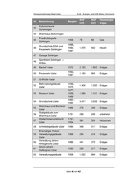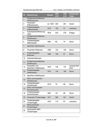 Klimaschutzkonzept Stadt Uslar 6.2.6 Energie- und CO2-Bilanz: Kommune BGF NGF Heizenergie- Nr. Bezeichnung Baujahr [m²] [m²] träger Kulturscheune 43 Schoningen 44 Wohnhaus Schoningen Friedhofskapelle 45 1958 78 68 Gas Sohlingen 1898, Grundschule,DGA und 46 1992, 1.070 942 Heizöl Feuerwehr Sohlingen 1997 47 Garage Sohlingen Sportheim Sohlingen + 48 Anbau 49 Bauhof Uslar 1972 2.155 1.853 Erdgas 1953, 50 Feuerwehr Uslar 1.120 963 Erdgas 1997 51 Grillhütte Uslar Mehrzweckgebäude 1946, 52 1.400 1.232 Erdgas Uslar 1975 1677, 53 Museum Uslar 1958, 1.289 1.121 Erdgas 1968 1960 - 54 Grundschule Uslar 3.617 3.255 Erdgas 1994 Wohnhaus und Bücherei 55 1986 276 248 Erdgas Uslar Stallgebäude zum 56 1751 290 249 unbeheizt Wohnhaus Uslar Obdachlosenunterkunft 1751, 57 381 324 Holzscheit Uslar 1954 58 Umkleidegebäude Uslar 1986 568 517 Erdgas Ehemaliges Polizei- 59 Verwaltungsgebäude 1968 254 216 Erdgas Uslar Verwaltung (ehem. 60 1889 441 375 Erdgas Amtsgericht) Uslar Archiv (ehem. 61 1930 255 217 Erdgas Gefängnis) Uslar 62 Verwaltungsgebäude 1958 1.052 894 Erdgas Seite 48 von 407