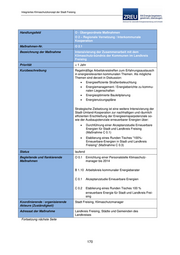 Integriertes Klimaschutzkonzept der Stadt Freising Aufwand / Kosten Gesamt Aufgabenbereich im Rahmen der einzurichtenden Perso- (in T Euro/a) nalstelle Klimaschutzmanager (O 0.1), abhängig von inhalt- licher Umsetzung 5.000 € für Neugestaltung der Webseite 2.000 € p.a. für Stand, Publikation von Informationsmateria- lien 2013-2015 2.000 € Jährliche Energieeinsparung nicht quantifizierbar Jährliche CO2-Einsparung (ab 2020 nicht quantifizierbar gemäß Zielszenario) Fördermöglichkeiten n.a. 169