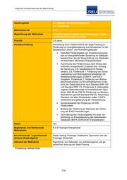 Integriertes Klimaschutzkonzept der Stadt Freising Handlungsfeld A – Akteurs- und Bürgerbeteiligung A 2 – Kampagne / Information Maßnahmen-Nr. A 2.1 Bezeichnung der Maßnahme Freisinger Energielokal Priorität < 1 Jahr Kurzbeschreibung Dauerhaftes und unabhängiges Informationsangebot an Bürgerinnen und Bürger der Stadt Freising zur Förderung der Gebäudesanierung inklusive Angebot einer kostenlosen Initialberatung, evtl. mobile Energieberatung, ggf. in Kooperation mit Stadtwerken Angebot einer Initialberatung zu verschiedenen Aspekten einer intelligenten Energieversorgung (Strom- u. Wärme) von Gebäuden mit Fokus auf Ein- und Zweifamilienhäuser Gebäudesanierung: Einsparpotenziale, Wirtschaftlichkeit, Information zu aktuellen Fördermöglichkeiten Wärmeversorgung: Einsatzmöglichkeiten und Wirtschaftlichkeit verschiedener Technologien, Information zu Fördermöglichkeiten Stromversorgung: Einsatzmöglichkeiten und Wirtschaftlichkeit von Anlagen zur Stromerzeugung aus erneuerbaren Energien, Einsatz von Speichertechnologien, Information zu Fördermöglichkeiten Zielsetzung: Wöchentlich Durchführung von zehn Initial- beratungen von Gebäudeeigentümern von Wohngebäuden, d.h. im Jahr 520 Initialberatungen mit dem Ziel, nach einer weiteren vertiefenden Anschlussberatung 25 % der insge- samt zur Initialberatung angesprochenen Gebäude- eigentümer zu einer umfassenden Gebäudesanierung zu motivieren. Status neu Begleitende und flankierende A 2.2 Informationskampagne zu Stromspeichern Maßnahmen B 1.5 Entwicklung und Angebot eines kommunalen Förder- und Modernisierungsprogramms B 2.1 Datenbank mit erfolgreichen Projekten der Wohngebäudesanierung und Veröffentlichung auf der Klimaschutz-Webseite der Stadt Freising B 2.7 Angebot der Durchführung von Wärmebildaufnahmen Koordinierende / organisierende Agenda 21 Akteure (Zuständigkeit) Kooperation Stadt und Landkreis Freising Fortsetzung nächste Seite 176