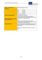 Integriertes Klimaschutzkonzept der Stadt Freising Aufwand / Kosten Gesamt nicht quantifizierbar, abhängig von inhaltlicher Umsetzung (in T Euro/a) 2013-2015 n.a. Jährliche Energieeinsparung nicht quantifizierbar Jährliche CO2-Einsparung (ab 2020 nicht quantifizierbar gemäß Zielszenario) Fördermöglichkeiten n.a. 171
