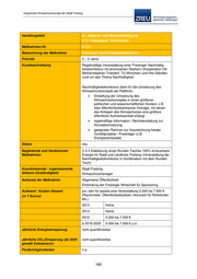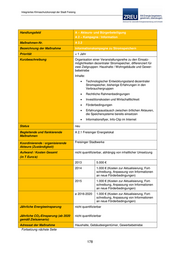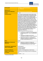 Integriertes Klimaschutzkonzept der Stadt Freising Handlungsfeld A – Akteurs- und Bürgerbeteiligung A 3 – Wettbewerb Maßnahmen-Nr. A 3.1 Bezeichnung der Maßnahme Weiterentwicklung der Energieolympiade Priorität < 1 Jahr Kurzbeschreibung Die Freisinger Energieolympiade fokussiert bisher erfolg- reich auf das Thema Stromsparen. Noch größere Energie- einsparpotenziale bestehen bei den Gebäuden häufig im Wärmebereich. Im Hinblick auf die Freisinger Energie- olympiade ist zu prüfen, ob der Energiesparwettbewerb um die Komponente "Wärme" erweitert werden kann. Weil Einsparungen beim Wärmeverbrauch in erster Linie über Maßnahmen der Gebäudesanierung erzielt werden können und die erzielten Effekte der Sanierung in den Heizperioden messbar sind, würde für die Durchführung eines Wärme- wettbewerbs ein Turnus von drei Jahren ausreichend sein. Z.B. könnte 2014 ein Wärme-Spar-Wettbewerb durch- geführt werden, bei den nach Gebäudetypen Wettbewerbs- beispiele von Sanierungen eingereicht werden könnten, die im Zeitraum 2010 bis 2012 abgeschlossen wurden. Als Bewertungskriterien könnte neben qualitativen Bewertungs- elementen (z.B. Einsatz besonders innovativer Techno- logien) die quantitative Wärmeinsparung dienen (ausgedrückt in kWh/(m²a)). Mögliche Komponenten der Weiterentwicklung: Einreichung von erfolgreichen Sanierungsprojekten im Gebäudebestand (Ein-, Zwei- und Mehrfamilien- häuser) Prämierung von Projekten, die sich durch vorbildhafte technologische Lösungen auszeichnen Übernahme der Gewinner in die Datenbank zu erfolgreichen Beispielen der Gebäudesanierung in der Stadt Freising (Maßnahme B 2.1) Status laufend Begleitende und flankierende B 2.1 Datenbank mit erfolgreichen Projekten der Maßnahmen Wohngebäudesanierung und Veröffentlichung auf der Klimaschutz-Webseite der Stadt Freising Koordinierende / organisierende Lokale Agenda 21 Akteure (Zuständigkeit) Freisinger Energielokal Freisinger Stadtwerke Adressat der Maßnahme Eigentümer von Wohngebäuden der Stadt Freising Aufwand / Kosten Gesamt Orientierung an den bisherigen Kosten der Energieolympi- (in T Euro/a) ade 2013-2015 n.a. Fortsetzung nächste Seite 181
