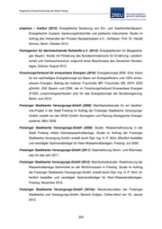 Integriertes Klimaschutzkonzept der Stadt Freising empirica – Institut (2012): Energetische Sanierung von Ein- und Zweifamilienhäusern. Energetischer Zustand, Sanierungsfortschritte und politische Instrumente. Studie im Auftrag des Verbandes der Privaten Bausparkassen e.V., Verfasser: Prof. Dr. Harald Simons. Berlin: Oktober 2012. Fachagentur für Nachwachsende Rohstoffe e.V. (2012): Energiepflanzen für Biogasanla- gen Bayern. Studie mit Förderung des Bundesministeriums für Ernährung, Landwirt- schaft und Verbraucherschutz aufgrund eines Beschlusses des Deutschen Bundes- tages, Gülzow: August 2012. ForschungsVerbund für erneuerbare Energien (2010): Energiekonzept 2050. Eine Vision für ein nachhaltiges Energiekonzept auf Basis von Energieeffizienz und 100% erneu- erbaren Energien. Beitrag der Institute: Fraunhofer IBP, Fraunhofer ISE, ISFH, IZES gGmbH, ZAE Bayern und ZSW, die im ForschungsVerbund Erneuerbare Energien (FVEE) zusammengeschlossen sind für das Energiekonzept der Bundesregierung. Berlin: Juni 2010. Freisinger Stadtwerke Versorgungs-GmbH (2008): Machbarkeitsstudie für ein Geother- mie-Projekt in der Stadt Freising im Auftrag der Freisinger Stadtwerke Versorgungs- GmbH, erstellt von der KESS GmbH: Konzeption und Planung ökologischer Energie- systeme, März 2008. Freisinger Stadtwerke Versorgungs-GmbH (2009): Studie: Wasserkraftnutzung in der Stadt Freising mittels Kleinstwasserkraftanlage. Studie im Auftrag der Freisinger Stadtwerke Versorgung GmbH, erstellt durch Dipl.-Ing. H.-P. Würl, öffentlich bestellter und vereidigter Sachverständiger für Klein-Wasserkraftanlagen, Freising: Juli 2009. Freisinger Stadtwerke Versorgungs-GmbH (2011): Datenlieferung Strom- und Wärmeab- satz für das Jahr 2011. Freisinger Stadtwerke Versorgungs-GmbH (2012): Machbarkeitsstudie: Reaktivierung der Wasserkraftanlage Steinmühle an der Wörthmoosach in Freising. Studie im Auftrag der Freisinger Stadtwerke Versorgungs-GmbH, erstellt durch Dipl.-Ing. H.-P. Würl, öf- fentlich bestellter und vereidigter Sachverständiger für Klein-Wasserkraftanlagen, Freising: November 2012. Freisinger Stadtwerke Versorgungs-GmbH (2012a): Netzstrukturdaten der Freisinger Stadtwerke und Versorgungs-GmbH, Bereich Erdgas. Online-Abruf am 16. Januar 2012. 243