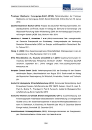 Integriertes Klimaschutzkonzept der Stadt Freising Freisinger Stadtwerke Versorgungs-GmbH (2012b): Netzstrukturdaten der Freisinger Stadtwerke und Versorgungs-GmbH, Bereich Elektrizität. Online-Abruf am 16. Januar 2012. Geothermiezentrum Bochum (2010): Analyse des deutschen Wärmepumpenmarktes. Be- standsaufnahme und Trends. Studie im Auftrag des Zentrums für Sonnenergie- und Wasserstoff-Forschung Baden-Württemberg (ZSW) für die Arbeitsgruppe Erneuerba- re Energien Statistik (AGEE Stat), Bochum: März 2010. Hennicke, P., Samadi S., Schleicher, T. et al. (2011): Ambitionierte Ziele - untaugliche Mit- tel: Deutsche Energiepolitik am Scheideweg. Hintergrundpapier der Vereinigung Deutscher Wissenschaftler (VDW) zur Energie- und Klimapolitik in Deutschland, Ber- lin: Februar 2011. Hönig, C. (2005): Ohne Gesamtkonzept keine Wirtschaftlichkeit. Wärmepumpen in der Alt- bausanierung. In: TGA-Fachplaner, Heft 5, S. 44-46. IFEU, Klima-Bündnis e.V., Deutsche Umwelthilfe e.V. (2011): Coaching Kommunaler Kli- maschutz, Schnellkonzept Klimaschutz. Strukturen schaffen - Klimaschutz dauerhaft verankern. September 2011. Online verfügbar unter: www.coaching-kommunaler- klimaschutz.net Intraplan Consult GmbH (2010): Verkehrsprognose 2025 als Grundlage für den Gesamt- verkehrsplan Bayern, Abschlussbericht vom August 2010. Studie erstellt im Auftrag der Bayerischen Staatsregierung für Wirtschaft, Infrastruktur, Verkehr und Technolo- gie. Institut für ökologische Wirtschaftsforschung (2010): Kommunale Wertschöpfung durch Erneuerbare Energien, Schriftenreihe des IÖW 196/10, Autoren: Hirsch B., Aretz A., Prahl A., Brother T., Rheinbach K. Pick D. Funcke S., Institut für Ökologische Wirt- schaftsforschung, Berlin: September 2010 Institut für Wohnen und Umwelt, Bremer Energieinstitut (2011): Zusammenfassung zum Forschungsprojekt "Datenbasis Gebäudebestand - Datenerhebung zur energetischen Qualität und zu den Modernisierungstrends im deutschen Wohngebäudebestand. Au- toren: N. Diefenbach, H. Cischinsky, M. Rodenfels (alle IWU), D. Clausnitzer (Bremer Energie Institut), Darmstadt: 22. Dezember 2010. Investitionsbank Schleswig-Holstein (2012): Wohnungsunternehmen als Energieversor- ger - Blockheizkraftwerke. Online unter: http://www.ib-sh.de 244