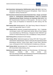Integriertes Klimaschutzkonzept der Stadt Freising Shell Deutschland, Hamburgisches WeltWirtschafts Institut, IFEU (2011): Shell Haus- wärmestudie Nachhaltige Wärmeerzeugung für Wohngebäude - Fakten, Trends und Perspektiven. Hamburg: November 2011. Shell Deutschland, Bundesindustrieverband Deutschland Haus-, Energie- und Umwelt- technik e.V., Hamburgisches WeltwirtschaftsInstitut, Institut für Technische Gebäudeausrüstung Dresden Forschung und Anwendung GmbH (2013): Shell BDH Hauswärmestudie. Klimaschutz im Wohnungssektor - Wie heizen wir morgen? Fakten, Trends und Perspektiven für Heiztechniken bis 2030. Hamburg, Köln: Mai 2013. Stadt Freising (2010): Beteiligungsbericht 2010. Stadt Freising, Referat für Wirtschaft, Fi- nanzen und Liegenschaften, Stand: 31.12.2010. Stadt Freising (2011a): Integriertes Innenstadt-Entwicklungskonzept - Teil A - Ergebnisbe- richt-Konzeption, Autoren: USP Projekte GmbH, Bachtler, Böhme & Partner Stadtpla- nung-Landschaftsplanung, CIMA Beratung + Management GmbH, INGEVOST Inge- nieurbüro für Verkehrsuntersuchung im Orts- und Stadtbereich, Freising: 30.06.2011. Stadt Freising (2011b): Jahresbericht Amt 65 Hochbau. Stadt Freising (2013a): Stadtentwicklungsplanung Freising STEP 2030 "Freising 2030" - Zwischenbericht: Bestandsanalyse, Studie im Auftrag des Planungsverbands Äußerer Wirtschaftsraum München, Transver GmbH, Steger & Partner GmbH, CIMA Bera- tungs- und Management GmbH, Froelich&Sporbeck Umweltplanung und Beratung. Stadt Freising (2013b): Nahverkehrsplan 2014 - Entwurfsvorlage vom 02.07.2013. Autor: BPV Consult GmbH, Koblenz/Hamburg, Erfurt. Statistisches Bundesamt (2008): Klassifikation der Wirtschaftszweige - Mit Erläuterungen. Wiesbaden: Dezember 2008. Online abrufbar unter: https://www.destatis.de/DE/Methoden/Klassifikationen/GueterWirtschaftklassifikatione n/klassifikationwz2008_erl.pdf?__blob=publicationFile 246