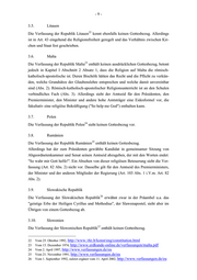 -9- 3.5. Litauen 22 Die Verfassung der Republik Litauen kennt ebenfalls keinen Gottesbezug. Allerdings ist in Art. 43 eingehend die Religionsfreiheit geregelt und das Verhältnis zwischen Kir- chen und Staat fest geschrieben. 3.6. Malta 23 Die Verfassung der Republik Malta enthält keinen ausdrücklichen Gottesbezug, betont jedoch in Kapitel I Abschnitt 2 Absatz 1, dass die Religion auf Malta die römisch- katholisch-apostolische ist. Deren Bischöfe hätten das Recht und die Pflicht zu verkün- den, welche Grundsätze der Glaubenslehre entsprechen und welche damit unvereinbar sind (Abs. 2). Römisch-katholisch-apostolischer Religionsunterricht ist an den Schulen verbindliches Fach (Abs. 3). Allerdings sieht der Amtseid für den Präsidenten, den Premierminister, den Minister und andere hohe Amtsträger eine Eidesformel vor, die fakultativ eine religiöse Bekräftigung ("So help me God") enthalten kann. 3.7. Polen 24 Die Verfassung der Republik Polen sieht keinen Gottesbezug vor. 3.8. Rumänien 25 Die Verfassung der Republik Rumänien enthält keinen Gottesbezug. Allerdings hat der zum Präsidenten gewählte Kandidat in gemeinsamer Sitzung von Abgeordnetenkammer und Senat seinen Amtseid abzugeben, der mit den Worten endet: "So wahr mir Gott helfe!". Ein Absehen von dieser religiösen Beteuerung sieht die Ver- fassung (Art. 82 Abs. 2) nicht vor. Dasselbe gilt für den Amtseid des Premierministers, der Minister und der anderen Mitglieder der Regierung (Art. 103 Abs. 1 i.V.m. Art. 82 Abs. 2). 3.9. Slowakische Republik 26 Die Verfassung der Slowakischen Republik erwähnt zwar in der Präambel u.a. das "geistige Erbe der Heiligen Cyrillus und Methodius", der Slawenapostel, sieht aber im Übrigen von einem Gottesbezug ab. 3.10. Slowenien 27 Die Verfassung der Slowenischen Republik enthält keinen Gottesbezug. 22 Vom 25. Oktober 1992, http://www./rkt.lt/konst/eng/constitution.html 23 Vom 13. Dezember 1974, http://www.erdkunde-online.de/verfassungen/malta.pdf 24 Vom 2. April 1997, http://www.verfassungen.de/eu 25 Vom 21. November 1991, http://www.verfassungen.de/eu 26 Vom 1. September 1992, zuletzt ergänzt vom 11. April 2002, http://www.verfassungen.de/eu