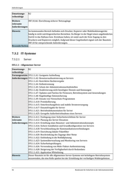 Anforderungen Umsetzungs- R2 reihenfolge Hinweis Die Anforderungen dieses Bausteins gelten für die Gebäude, welche von Kommunen, Bund und Ländern für die vorläufige Wahlergebnisermittlung genutzt werden. Sofern in Amtshilfe Räumlichkeiten anderer Gebietskörperschaften, Ressorts oder Einrichtungen mitgenutzt werden (sollen) und formal notwendige Vereinbarungen (z.B. Staatsverträge) nicht zeit- und situationsgerecht abgeschlossen werden können, sollte die Einhaltung der Anforderungen mit dem Gastgeber besprochen bzw. kompensatorische eigene Maßnahmen vorgesehen werden. Besonderheiten INF.1.A23 Für die Instanzen Länder und Bund sollten Räume ähnlichen Schutzbedarfs in Sicherheitszonen zusammengefasst werden. Es sollte ein Sicherheitszonenkonzept für das jeweilige Gebäude entwickelt und dokumentiert werden. Zusätzliche Anforderung zur Vermeidung der Reinigung Am Tag der Wahl bzw. während den Arbeiten für die Schnellmeldungen sollte keine Gebäudereinigung stattfinden, um mögliche Störungen oder Manipulationen der Daten zu vermeiden. INF.3 – Elektrotechnische Verkabelung Umsetzungs- R3 reihenfolge Vorausgesetzte INF.3.A1: Auswahl geeigneter Kabeltypen Anforderungen INF.3.A2: Planung der Kabelführung INF.3.A3: Fachgerechte Installation Weitere INF.3.A5: Abnahme der elektrotechnischen Verkabelung relevante Anforderungen Hinweis Bei Wahlen wird wegen dem temporären Aufbau von Technik häufig auch eine temporäre Elektroinstallation durchgeführt. Für diesen Fall ist der Baustein INF.3 zu berücksichtigen. Besonderheiten INF.3.A5 Wird für die Schnellwahl eine temporäre Verkabelung eingerichtet, sollte diese vorab geprüft und abgenommen werden. INF.4 – IT-Verkabelung Umsetzungs- R3 reihenfolge Vorausgesetzte INF.4.A1: Auswahl geeigneter Kabeltypen Anforderungen INF.4.A2: Planung der Kabelführung INF.4.A3: Fachgerechte Installation; INF.4.A9: Dokumentation und Kennzeichnung der IT-Verkabelung Weitere INF.4.A5: Abnahme der IT-Verkabelung relevante Anforderungen Hinweis Bei Wahlen ist wegen dem temporären Aufbau von Technik häufig auch eine temporäre Netzwerkinstallation vorzufinden. Für diesen Fall ist der Baustein INF.4 zu berücksichtigen. Bundesamt für Sicherheit in der Informationstechnik 41