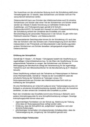 Der Ausschluss von der schulischen Nutzung durch die Schulleitung stellt einen Verwaltungsakt dar. Er bewirkt, dass Schülerinnen und Schüler nicht am Prä- senzunterricht teilnehmen dürfen. Distanzunterricht kann aus Gründen des Infektionsschutzes auch für einzelne ‘Schülerinnen und Schüler oder einen Teil der Schülerinnen und Schüler erteilt werden ($ 3 Absatz 5 Zweite Verordnung zur befristeten Änderung der Ausbildungs- und Prüfungsordnungen gemäß 8 52 SchulG — DistanzunterrichtVO). Es handelt sich insoweit um eine Ermessensentscheidung der Schulleitung anhand der Umstände des Einzelfalls und unter Berücksichtigung der personellen Ressourcen in der Schule. Es gibt mithin kein Wahlrecht zwischen Präsenz- und Distanzunterricht. Ermessensleitende Gesichtspunkte können für die Schulleitung z.B. auch das Alter der Schülerin oder des Schülers sein (Testverweigerung durch die Eltern insbesondere in der Primarstufe und Sekundarstufe I) oder bereits zugunsten anderer Schülerinnen und Schüler derselben Jahrgangsstufe eingerichteter Distanzunterricht. Erfüllung der Schulpflicht Gemäß 88 41 Absatz 1, 43 Absatz 1 Schulgesetz besteht die Verpflichtung zur regelmäßigen Unterrichtsteilnahme bzw. für die Eltern die Verpflichtung, für eine entsprechende Teilnahme zu sorgen. Bei Schülerinnen und Schülern im Bildungsgang der Berufsschule obliegt die Verantwortung für die regelmäßige Teilnahme auch den Mitverantwortlichen für die Berufserziehung ($ 41 Absatz 2 SchulG). Diese Verpflichtung umfasst auch die Teilnahme an Präsenzphasen im Rahmen eines Wechselmodells. Gemäß $ 1 Absatz 2a der CoronaBetrVO setzt die schulische Nutzung die Teilnahme an Testungen voraus. Ein Nutzungsausschluss aus Gründen des Infektionsschutzes führt nicht zur Aufhebung der Schulpflicht. Ob eine Nichtteilnahme am Unterricht aufgrund einer Testverweigerung eine mit Bußgeld zu ahndende Schulpflichtverletzung darstellt, dürfte eher die Ausnahme darstellen, ist aber anhand der Umstände des Einzelfalls zu prüfen. Nach den Umständen des Einzelfalls kommt eine Ahndung in Betracht, wenn weitere Anknüpfungspunkte für eine Schulpflichtverletzung vorliegen. PRIORBE Anknüpfungspunkte können etwa sein: ° eigenmächtiges Fernbleiben von der Schule wg. Ablehnung der Testung, ohne dass ein Nutzungsausschluss verfügt worden wäre, ° _ Erklärung, dass die Schulpflicht als „aufgehoben“ angesehen wird oder ähnliche Äußerungen, « pflichtwidriges Vorverhalten mit entsprechenden Anhaltspunkten, dass die - Testverweigerung als „Umgehung“ der Schulpflicht genutzt wird. ‘Unentschuldigte Fehlstunden