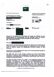 Von ·~ ;com> .An: · ~@bmvbs.bund.de> Datum: 0~5 Betreff:_ u Ihrem Schreiben S - o m 19.12.2007. Vorab per E-Mall l Stellungnahme zur Verordnung zur Neuordnung des Rechts der Ertellung von EG-Genehmigungen fOr Kraftfahrzeuge .und ihre Anhänger sowie fDr Systeme, Bauteile und selbständige technische Einheiten für diese Fahrzeuge und · Entwurf einer Anderung des Straßenverkehrsgesetzes Ihr Schreiben~ vom 19.12.2007 Sehrgeeh vielen Dank für die Übersendung d~s Entwurfes o.g. Verordnung und die Möglichkeit dazu Stellung zu nehmen . . Unter Bezugnahme auf Ihr Schreiben vom 19.12.2007 mit dem Entwurfsstand der Verordnung vom 10.12.2007 in Verbindung mit den drei be~nnten BeschlDssen der Sondersitzung des BLFA-TK und BLFA-FZ am 30.01 .2008 mochten wir den dort gefundenen Losungen zustimmen. Für die_Beantwortung weiterer Fragen stehen wir Ihnen ab sofort ge·m zur Verfügung. Mit freundlichen Großen