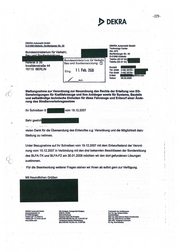 -229- J> DEKRA DEKRA Automobil GmbH D--01998 Klettwjtz. Senftenberger Str. so DEKRA Automobil GmbH Tec:hnology Center AblAP3 Bundesministerium für Verkehr, Senftenberger Str. 30 ------- D-01998 Klettwilz B1Jndesministori11m rnr Verkehr, Telefon (03 57 5 4 ) - eera Telefax (03 57 54) Bau und S~aclte.ntwicklung (D . lnvalidenstraße 44 Kontakt 10115 BERLIN 11. Feb. 20a3 Tel. direkt (+49) 35754 • Eing . Fax direkt (+49) 35754 - E-Mail Datum 08.02.2008 . ·- · Stellungnahme zur Verordnung zur Neuordnung des Rechts der Erteilung von EG- ( Genehmigungen für Kraftfahrzeuge und Ihre Anhänger sowie für Systeme, Bauteile und selbständige technische Einheiten für diese Fahrzeuge und Entwurf einer Ände- rung des Straßenverkehrsgesetzes Ihr Schreiben S - v o ~ 19.12.2007 Sehr geehrt ·--.-· . .. vielen Dank für die Übersendung des Entwurfes o.g. Verordnung und die Möglichkeit dazu Stellung zu nehmen. Unter Bezugnahme auf Ihr Schreiben vom 19.12.2007 mit dem Entwurfsstand der Verord- nung vom 10.12.2007 in Verbindung mit den drei bekannten Beschlüssen der Sondersitzung des BLFA-TK und BLFA-FZ am 30.01 .2008 möchten wir den dort gefundenen Lösungen zustimmen. Für die Beantwortung weiterer Fragen stehen wir Ihnen ab sofort gern zur Verfügung. Mit freundlichen Grüßen DEt<RA Aulamobff GmbH Sitz Stutlgalt, AmllgericH Stull;art. Vanitmiderdcs ~ Hendwelka1raße 15 HRB-Nr. 21039 1'R>t Dr.-Iog. Oodmd Udler D•705e5 Stua;art llankYertalrw,g Gescblftsllllnr: Telel'on (rrT 11) 78 81-0 Dresdner BankAG Stut!gart Dipl~ (fH) Cllmca KUnb (Vcnimoder) Telarax (07 11) 78 81-22 40 (BlZIIOO 800 00) KIO.-Nr. 9 010 051 00 Dipl.-log. (FH)W.,...vvallal www.dekra.com Landesbank B a d ~ Olpl.-lC!m. w~ Llnscnalaicr (81.Z 600 501 01) Klo.-Nr. 2 019 525 Dr.-J„OmlN..-na