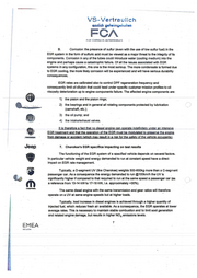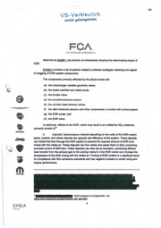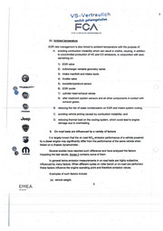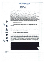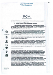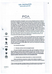 288 VS-V~rtraulich amtlich 9eheim~ehühen . FIA1 CHRYSLER AUTOMOBILES according to the regulatory homologation cycle pursuant to Regulation (EC) No 715/2007 of ' the European Parliament and of the Council of June 20 2007, as amended ("New European : Driving Cycle" or ."NEDC"). The result of the test indicated NOx emissions within the regulatory · limit (140 nig/km vs. the 180 mg/km limit). Then you have performed a second cycle, identical ! to the NEDC other than that the test has been commenced with warm engine (rather than cold\ as prescribed for the NEDC). ,The result of such second cycle as to NOx emissions·is 977 1 mg/km. The sa!,l'le cycle as used in the second test has then been repeated, • with • the relevant 11 results measured with a PEMS and the outc:ome was 1097 mg/km. Then you have carried out \ an on road cycle intended to replicate the conditions of the NEDC , but with warm engine at \ start, with a NOx result of 2498 mg/km. Then this last cycle has been repeated on road three times with certain variations that you have introduced , with NOx results of 2344, 2560 and 2241 mg/km respectively. Finally you have perlormed an on road test according to a real driving cycle and recorded NOx emission of 2290 mg/km. In your letter of November 13, 2015 you have stated that you consider the NOx levels resulting from your test, both on the chassis dynamometer and on the road, "excessive•. In the meeting of November 19, 2015 you have expressed concerns regarding the difference in results between the test performed on the c~assis dynamometer according to the NEDC with cold engine at cranking ("Cold NEDC Test") versus the results of the same cycle performed with warm engine at cranking ("Wann NEDC Test") and the use of temperature as parameter in EGR control strategies. PIOlfS5IOIW 2 Our ~omments are as follows. Jeep 2. Cherokee confonns to the f1omologated sample The result of the NEDC cycle performed by KBA under the regulatory conditions (i.e. with cold engine at cranking) is within the regulatory limit (NOx was 140 mg/km, vs, the 180 mg/km homologatiori ·nmit) and conforms to the homologation value. The result of your test performed i~ accordance with the regulatory requirements demonstral es that the Cherokee meets the regulatory requirement to conform to the homologated sample. 3. Cherokee does not detect being tested oi, a chassis dynamometer Sensors and electronic cornponents in modern motor vehicles are capable of "detecting• the start of an emissions test in the laboratory and activating a specific p~edefined 2 FCA is not aware of the factual and logical background of the testing sequence and methodology used by KBA, nor of the details of its implementation and reserves further comments on each of them. 2 EMEA