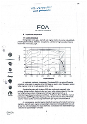294 vs - Vertrau \ich . amtlich geheimgehalten FCA FIAT CHRYSL ER AU l O MOB IL~S 8. In particular: temperature (a) Coolant temperature Ouring engine wann-up (i.e. start with cold engine, which is the normal and statistically prevailing start condition), EGR rates are applied as a function of engine speed and load as · represented on the below graph. 16-,,------.---~------~------------ 1 \ 14 . ----- - - - - - - - '~- - s:...:.._-.c;:..:.:.:..:..:..:...:, ------- -- --· ' 12 - - ~ - - - - -- - - - - ~ . ~. -- - - - ._- . .' ' . ' .. ' . \ ! w 10 - -- - '' ' ' - - ' - -- - - -- - -- lE A. 8 ----'----' ·- -- : ______ ___ _ : C, ~ : : \ 6 - --~- .- -- - - · , . - - -\- :--- - -- . - -- .. 1 . • .• .'• ' 4 11----~.- .. .. - - ; . • •• - • - • - · r - - -•- . 2 --- ----·-i··- - -- - ------ --- • PICIIISSIONAl .. . 0 ..Jl,._..;;_..,._ _......;•'........._.;..;,._.....i.;..._ _ _ _ -'-'~--"~~-.....,j Jeep 1250 1500 1750 2000 2250 2500 2750 3000 3250 C.> • ~ Englne Speed [rpm] As previously mentioned, the purpose of Cherokee's EGR is to reduce NOx engine emissions, to the extent the operation of the EGR does not result in risk of damage or accident to the engine or in risk for the safe ope·ration of the vehicle. Operating _the engine with the above EGR rates contlnuously, especially under partlcular driving conditions like door-to-door and heavy urban and generally short trips, may tn lead to high soot generation, with progressive fouling of engine components up to --· matfunctioning and/or permanent component failure. Furthermore, those EGR rates may lead to an increase of D~F Regeneration frequency and oil dilution that could drive under specific customer mission profil~s to oil viscosity deterioration up to engine components failure. · As a consequence, to protect engine reliability for cranking perfonned with waimed-up engine (i.e. start with warm engine, correspon~ing to instances of prolo11ged vehicle use, such as long trips with intennediate short stops) EGR rates are modulated (not deactivated) through a reduction of approximately 5 to 15 units. 8 EMEA