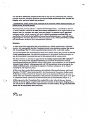 269 This data is the intellectual property of the VMs so why does the Commission seek to bypass copyright protection and design protection and stimulate illegal prolüeration of the data and the bringing to the market of unsafe fake products? A standard data format for the parts catalogues of the European vehicle manufacturers is not feasible, due to technlcal reasons: Tue Commission proposal indicates a commoo structured process (i.e. a standard) for this data. -To define a standard format for all VMs will be nearly impossible due to the huge complexity and variety of the VMs processes, data bases, logics and systems. To determine exactly which part numbers a specific vehicle consists of will result in initial investments exceedi_n g €20M per manufacturer (with substantial additional aonual operating/maintenance costs aod require huge manpower resources. Experience with recent projects such as MYCAREVENT and OASIS have demonstrated the failure of EU standardisation initiatives. Summary: ,C--) _As noted earlier, basic engineering data is the backbone of a vehicle mariufacturer's intellectual ..., property. lt is unacceptable that the Commission should eveo consider a proposal tl18t puts at risk the standing of the EU vehicle manufacturing industry in the world-wide market. lt,is also unacceptable that the Comrnission should even consider making this proposal on raw data via the comitology process. The industrial consequences of the proposal are far reaching and we urge the Comrnission to reconsider the need for this proposal with the utmost priority. 1 The above concems on raw data are aggravated ·by the existing requirement in EU legislation< > whereby VMs must provide appropriate infonnation to IOs for the development ofcorrectly functioning replacement parts with the vehicle' s OBD system. As a consequence of this, the world- wlde parts copy industry is being supported with VM internal data at an early stage in the vehicle production cycle, accelerating the migration of business and jobs out of the EU and increasing the risk of product piracy. · ACEA would like to remind the Commission that Article 9 of European Parliarnent and Council 0 Regulation 715/2007' states that by July 2011, the Commission the Commission shall present to the Europeari Parliament and to the Council a report on the Operation ofthe system of access to vehicle repair and mainten~nce information, wi(h particular consideration being given .to the effect on competition and the operation of the internal market and the environmental benefits. [ ... ]. C.,', , ACEA proposes that the Commission first conduct this review before it takes any decision affecting the already highly competitive EU automotive industry. In this respect, the proposal on raw data should be deleted and the Implementation of Article 13(8)(a) of Regulation 692/2008 should also be delayed untll after this review. ACEA th 17 july 2009 3