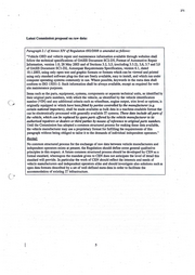 271 Latest Commissioli proposal on raw data: Paragraph 2.1 ofAnnex XIV of Regulation 692/2008 is ameruled as follows: "Vehicle OBD and vehicle repair and maintenance information available through websites shall follow the technical specifications of OASIS Document SC2-D5, Format of Automotive Repair .Information, version 1.0, 28 May 2003 and of Sections 3.2, 3,5, (excluding 3.5.2), 3,6, 3.7 and 3,8 ·of OASIS Document SCl-D2, Autorepair Requirements Specification, version 6.1, dated· 10.1.2003, using only open text and graphic formats or formats which can be viewed and printed using only standard software plug-ins that are freely available, easy to install, and which run under ·computer operating systeins commonly in use. Where possible, keywords in the meta data shall conform to ISO 15031-2. Such information shall be always available, except as required for web- site maintenance purposes. Items such as the parts, equipment, systems, components or separate technical units, as identified by their original parts numbers, with which the vehicle, as identified by the vehicle identification number (VIN) and any additional criteria such as wheelbase, engine output, trim level or options'. is ciriginally equipped or which have beenjitted by parties cont.rolled by the manufacturer (e.g. certain naJional importers), shall be made available as bulk data in a machine-readable format that can be electronically processed with generally available IT systems. These data include all parts of the vehicle, which can be replaced by spare parts offered by the vehicle manufacturer to its authorised repairers or dealers or third parties by means of reference to original parts numbers. Until the Commission has adopted a cominon structured process for malcing these data available, the vehicle manufacturer may use a proprietary format for fulfilling the requirements of this paragraph without being obliged to tailor it to the demands of individual independent operators." Recital; No common structured process for the exchange of raw data between vehicle manufacturers and independent operators exists at present, the Regulation should define some general qualitative principles in this respect. A future common structured process should be developed by· CEN as a fonnal standard, whereupon the mandate given to CEN does not anticipate the level of detail this standard will provide. In particular the work of CEN should reflect the interests and needs of vehic\e rnanufacturers and independent operators alike and should investigate also solutions such as open data formats described by a set of well defined meta-data in order to facilitate the accommodation of existing IT infrastructure. . 5