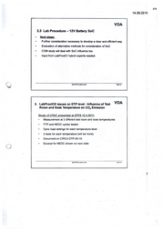 175 14.09.2016 VDA 2.3 Lab Procedure - 12V Battery SoC • Next steps: . Further consideration necessary to develop a clear and efficient way. ·• Evaluation of alternative metho_d s for consideration of SoC • COM study wilrdeal with SoC influence too. • Input from LabProcEV hybrid experts needed. WI.TP DTP LabPnx: ICE Seile13 3. LabProclCE issues on DTP level - lnfluence of Test VDA Room and Soak Ten,perature on C0 2 Emission Study of UTAC presented at DTP5 12.4.2011: Measurement at 3 different test room and soak temperatures FTP and NEDC cycles tested Dyno load settings for each temperature level 2 tests for each temperature (will be more) Document on CIRCA DTP-05-10 Excerpt for NEDC shown on_next slide 'n'LTPOTP LabProc ICE SOite 14 7