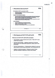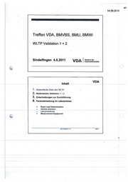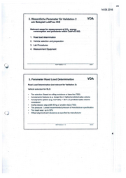 189 · 14.09.2016 3. Durchführung der Validierung (Stand DTP5) VDA Vorläufige Eckpunkte: • Teilnehmer bis jetzt: Japan, Korea, ACEA, UTAC • Validation 2 startet 30.9.2011 • Geplant sind etwa 6 Fahrzeuge je Labor Wesentliche Punkte sind noch offen: • Wie wird Validation 1 durchgeführt? · Wie erfolgt der Übertrag auf den WL TP? ·• Nach welchen Kriterien werden die Ergebnisse bewertet? 2. Meilensteine für Validation 1 + 2 VDA Working plan · for · Validation 1+2 Source N. lchlkaw• \VL TP V.1lidoh011 t • 2 Sci1c6 3