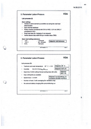 192 14.09.2016 3. Parameter Labor-Prozess VDA Lab process (1) . Dyno setting: • Vehicle in same warmed up condition as during the road load determination • Dyno thermal stabilized • Rotary masses considered with 3% for 4WD; 1,5 % for 2WD, if considered in RLD • Road load data (for Validation 2 not relevant) • lnertia classes step width 60 kg or smaller steps (TBD) Dyno load setting tolerance: 2% >50km/h 1Setpolnt: mld tolerance -1 3%? 30 - 50 km/h • 10 % <30 km/h Selo11 3. Parameter Labor-Prozess VDA Lab process (II): • Testroom and soak temperature 25° · C -+ 5 K [se~i~t:-25; c - ·1 • Humidity 1Setpoint: 50 •1o rH 1 • Soak time 12-36 h without forced cooling down (6h with) Setpolril 24h +-1h • Gear sh\ft points as availabr'e Setpoint: no smoothing, no • Speed trace: +-3 km/h 1 excessive throttle actuatlon J • Number of tests: 3 wilh averaging (for validalion only) ' • No external battery charging after precondilioning run WLTP Validation 1 + 2 .Seite 12 6