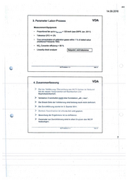 193 14.09.2016 3. Parameter Labor-Prozess VDA Measurement Equipment: Proportionalfan up to Vmax cyc18 < 120 km/h (see GRPE Jan; 2011) • Tolerance CFO <= 2% • True concentration of calibration gases within 1 % of stated value (Additional Pollutants TBD) NO. Converter efficiency > 95 % • Linearity check analyzer 1Setpolnt: mid tolerance Wl.'TPV111<1ation1 +2 SeKe 13 - - - - - - - -,- -~LZusammenfassung _ _ _ _ _ _ _ _ _ _ _ VDA ► Ziel der Validie,ung: Überprüfung aes WLTP-2.yklus im Verbu nd mit der neuen Testprozedur auf Machbarkeit und Reproduzierbarkeit .,_ ► ' Validation 2 beinhaltet nicht eine l<orrelation „ alt - neu". ·► Die Einzel-Ziele der Validierung sind bislang noch nicht definiert. . ► Die Durchführung startet im 3. Quartal 2011. · ► Zeniraie i<oordination ist erforde,iich und gepiant. ► Bewertung der Ergebnisse ist zu definieren. ( ) ► Pa rameter zur Durchführung sind in allen Gruppen des WLTP festzulegen. WLTPVolldalioo1 • 2 Sei1c 14 7