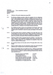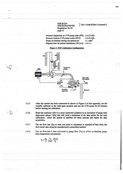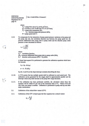 120 E/ECFJ324 } Rev. l/Add.82/Rev.3/Amend.2 E/ECE/TRANS/SOS Regulation No 83 page41 · Pressurc depression at CVS pump inlet (PPI) ±0.22kPa Pressure head at CVS pump outlet (PPO) ·±o.22kPa 1 Pump rcvolutions during tcst pcriod (n) ± l min" Eiapscd time for pcriod (minimum 250 s) (t) ±0.i s Figure 8: POP Calibration Configuration Hlllr r- Ia: . &..,Clllllllol >'IM(mDr) ..__ _ _ _ _ Tcnp,aflR Im \ ~ pro 2.2.5. After the systcm has bcen conncctcd as shown in Figurc 8 ·of this appcndix, set the variable restrictor in thc wide-opcn position and run the CVS pump for 20 minutes bcfore starting the calibration. 2.2.6.. Reset the rcstrictor valve to a more restrictcd condition in an increment of pump inlet depression (about l kPa) that will yield a minimum of six data points for the total calibration. Allow the system to stabiliz.e for tbree minu~ and repeat the data acquisition. · 3 2.2.7. The air flow rate (Q,) at cach test point is calcula~ in standard m /min from the ~ow-meter data using the manufacturcr's prescnl>ed method. 3 2.2.8. The air flow-rate is then converted to pump flow· (V0) in m /rev at absolute pump inlet temperature and pressure. T. . 1 Vo =-• Q . _P__ 101.33 n 273.2 PP 1