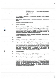 124 E/ECE/324 } . Rev.l/Add.82/Rev.3/Amend.2 E/ECE/TRANS/505 Regulation No 83 page 45 For a minimum of eight points in the critical region, calculate an average Kv and the standard deviation. If the standard deviation exceeds 0.3 per Cent of the average Kv, take corrective action. 3. SYSTEM VERIFICATION PROCEDURE 3.1. General Requirements The total accuracy of the CVS sampling system and analytical system shall be determined by introducing a known mass of a J>Pllutant gas into the system whilst it is being operated as if during a normal test and then analysing and calculating the ( ) pollutant ~ass according to the formula in paragraph 6.6. of Annex 4a except that the density ofpropane shall be taken as 1.967 grams per litre at standard conditions. The following two techniques are known to give sufficient accuracy. The maximum permissible deviation between the quantity of gas introduced and the quantity of gas measured is 5 per cent. 3.2. CFO Method 3 .2.1. a Metering a constant flow of pure gas (CO or C3H8) using critical flow orifice device. 3.2.2. A known quantity of pure gas (CO or C3H8) is fed into the CVS system through the calibrated critical orifice. If the inlet pressure is high enough, the flow-rate (q), which is adjusted by means of the critical flow orifice, is independent of orifice outlet pressure (critical flow). If deviations exceeding 5 per cent occur, the cause of the malfunction shall be detemrined and corrected. The CVS system is operated as in an exhaust emission test for about 5 to I Ominutes. The gas collected in the sampling bag is analysed by the usual equipment and the results compared to the ,,.. concentration of the gas samples which was known beforehand. 3.3. Gravimetrie Method 3.3.1. Metering a limited quantity of pure gas (CO or C3H8) by means of a gravimetric technique. 3.3.2. The following gravimetric procedure may be used to verify the CVS system. Tue weight of a small cylinder filled with either carbon monoxide or propane is determined with a precision of ± 0.0 i g. For about 5 to 10 minutes, the CVS system is operated as in a normal exhaust emission test, while CO or propane is injected into the system. · The quantity of pure gas involved is detennined by means of differential weighing. The gas accumulated · in the oag is ilien analysed · by means of the equipment normally used for exhaust-gas analysis. The results are then compared to the concentration figures computed previously.
