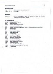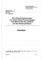 19 DUH / Fiat 500X / AFHB '16 9 8. FIGURENLISTE Figur 7 : Chronologische Liste der Messserien Figuren 8 - 15 : Messungen 9.ANHANG Anhang 1 : AFHB - Stellungnahme über die Verantwortung über die öffentliche Information mit Hilfe unserer Berichte. 10. ABKÜRZUNGEN AFHB Abgasprüfstelle FH Biel, CH AGR Abgasrückführung CADC Common Artemis Driving Cycles CLD Chemoluminescence Detector cvs Constant Volume Sampling: Dilution Tunnel for Regulated Emission Measurement DF Dilution Factor 01 Direct lnjection DOC Diesel Oxidation Catalyst DPF Diesel Particle Filter EU European Union EUDC Extra Urban Driving Cycle FID Flame lonization Detector MIL Malfunction lndication Lamp NDIR Non Dispersive lnfrared NEDC New European Driving Cycle NEFZ Neuer Europäischer Fahrzyklus OBD On Board Diagnosis VIN Vehicle ldentification Number WLTC Worldwide harmonized Light duty Test Cycle c: 4WD 4 Wheels Drive