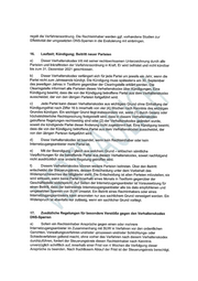 regelt die Verfahrensordnung. Die Rechteinhaber werden ggf. vorhandene Studien zur Effektivität der umgesetzten DNS-Sperren in die Evaluierung mit einbringen. 16. Laufzeit; Kündigung; Beitritt neuer Parteien a) Dieser Verhaltenskodex tritt mit seiner rechtswirksamen Unterzeichnung durch alle Parteien und Inkrafttreten der Verfahrensordnung in Kraft. Er wird befristet und nicht kündbar bis zum 31. Dezember 2021 geschlossen. b) Dieser Verhaltenskodex verlängert sich für jede Partei um jeweils ein Jahr, wenn die Partei nicht zum Jahresende kündigt. Die Kündigung muss spätestens am 30.-September des jeweiligen Jahres in Textform gegenüber der Clearingstelle erklärt‘ werden. Die Clearingstelle informiert alle Parteien dieses Verhaltenskodex über. Kündigungen. Eine Kündigung bewirkt, dass die von der Kündigung betroffene Partei aus dem Verhaltenskodex ausscheidet, der von den übrigen Parteien fortgeführt wird. c) Jede Partei kann diesen Verhaltenskodex aus wichtigem Grund ohne Einhaltung der Kündigungsfrist nach Ziffer 16 b innerhalb von vier (4},Wochen'nach Kenntnis des, wichtigen Grundes kündigen. Ein wichtiger Grund liegt insbesondere vor, wenn (1).durch Gesetz oder höchstrichterliche Rechtsprechung festgestellt wird, dass’ in diesem Verhaltenskodex getroffene Regelungen rechtswidrig sind oder. (2) der Verhaltenskodex geändert wurde, soweit die kündigende Partei dieser Änderung nicht zugestimmt hat. Eine Kündigung bewirkt, dass die von der Kündigung betroffene.Partei aus dem Verhältenskodex ausscheidet, der von den übrigen Parteien fortgeführt wird. d) Diese Verhaltenskodex ist'beendet, wenn. kein Rechteinhaber oder kein Internetzugangsanbieter mehr’Partei:ist. e) Mit der Beendigung — ‘gleich: ausiwelchem Grund -erlöschen sämtliche Verpflichtungen für die‘ betreffende Partei als.diesem Verhaltenskodex, soweit nachfolgend nicht ausdrücklich eine andere‘ Regelung: getroffen wird. f) Diesem Verhaltenskodex können weitere Parteien beitreten. Über den Beitritt entscheidet.der Steuerungskreis, dessen Entscheidung unter dem Vorbehalt des Widersprüchsrechtes:der- Mitglieder steht..Die Entscheidung ist allen Parteien mitzuteilen; sie wird wirksam;.wenn keine Partei Innerhalb‘ eines Monats in Textform gegenüber der Geschäftsstelle‘ widerspricht, Auf Seiten der Internetzugangsanbieter ist Voraussetzung für einen Beitritt, dass der beitreteride Internetzugangsanbieter alle bis dato empfohlenen und umgesetzten Sperreriwvon SUW umsetzt. Ein Beitritt eines Rechtinhabers oder eines Internetzugangsanbieters. kann ansonsten nur aus sachlichem Grund verweigert werden. Ein Widerspruchist ebenfalls:nur zulässig, wenn ein sachlicher Grund vorliegt. 17. _ Zusätzliche Regelungen für besondere Verstöße gegen den Verhaltenskodex DNS-Sperren a) Sofern ein Rechteinhaber Ansprüche gegen einen oder mehrere Internetzugangsanbieter im Zusammenhang mit SUW in Verfahren vor den ordentlichen Gerichten, Verwaltungsverfahren und/oder -prozessen und/oder Schlichtungs- oder Schiedsverfahren geltend macht, ohne vorher das Verfahren nach diesem Verhaltenskodex durchzuführen, fordert der Steuerungskreis diesen Rechteinhaber nach Kenntnis unverzüglich schriftlich auf, innerhalb einer Frist von 4 Wochen die Verfolgung dieser Ansprüche zu beenden. Nach fruchtlosem Ablauf der Frist ist der Steuerungskreis berechtigt,