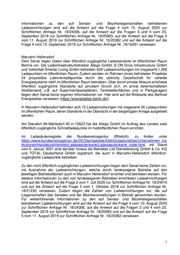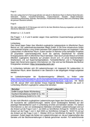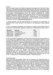 Betreiber Adresse PLZ Allego GmbH Lindenstr. 113 10969 Allego GmbH Lindenstr. 113 10969 Allego GmbH Mehringdamm 10 10961 Allego GmbH Prinzenstr. 97 10969 Zu den nicht öffentlich-zugänglichen Ladeeinrichtungen liegen dem Senat keine Zahlen vor, mit Ausnahme der Ladeeinrichtungen, welche durch landeseigene Betriebe auf den jeweiligen Betriebsflächen auch in Friedrichshain-Kreuzberg errichtet und betrieben werden. Für weitere Informationen zu den von landeseigenen Betrieben errichteten Ladeeinrichtungen wird auf die Antwort auf die Frage 2 vom 7. Juli 2020 zur Schriftlichen Anfrage Nr. 18/24010 und auf die Antwort auf die Frage 3 vom 1. Oktober 2019 zur Schriftlichen Anfrage Nr. 18/21230 verwiesen. Zudem liegen die Zahlen von Ladeeinrichtungen vor, die auf Liegenschaften des Senates und der Bezirksverwaltungen in Betrieb genommen wurden. Für weiterführende Informationen zu den auf Senats- und Bezirksliegenschaften betriebenen Ladeeinrichtungen wird auf die Antwort auf die Frage 4 vom 10. August 2020 zur Schriftlichen Anfrage Nr. 18/24306, auf die Antwort auf die Fragen 3 und 4 vom 23. September 2019 zur Schriftlichen Anfrage Nr. 18/20993 und auf die Antwort auf die Frage 5 vom 11. August 2019 zur Schriftlichen Anfrage Nr. 18/20382 verwiesen. Reinickendorf Dem Senat liegen Daten über öffentlich-zugängliche Ladestandorte im öffentlichen Raum Berlins vor. Die Ladeinfrastrukturbetreiber Allego GmbH, E.ON Drive Infrastructure GmbH und Vattenfall Smarter Living GmbH betreiben 629 Ladeeinrichtungen mit insgesamt 1.206 Ladepunkten im öffentlichen Raum. Zudem werden im Rahmen eines befristeten Projektes 24 proprietäre Laternenladepunkte durch die ubitricity Gesellschaft für verteilte Energiesysteme mbH im öffentlichen Raum betrieben. Über durch private Akteure errichtete öffentlich zugängliche Standorte auf privatem Grund (d.h. im privat bewirtschafteten Straßenland, z.B. auf Supermarktparkplätzen, Tankstellenflächen und in Parkgaragen) liegen dem Senat keine eigenen Informationen vor. Hier wird auf die Webseite des Berliner Energieatlas verwiesen (https://energieatlas.berlin.de/). In Reinickendorf befinden sich elf Ladeeinrichtungen mit insgesamt 19 Ladepunkten im öffentlichen Raum, deren Standorte in der Übersicht in der beigefügten Anlage aufgelistet werden. Am Standort Berliner Str. 54 in 13507 hat die Allego GmbH im Auftrag des Landes zwei öffentlich-zugängliche Schnellladepunkte im halböffentlichen Raum errichtet. Im Ladesäulenregister der Bundesnetzagentur (BNetzA), zu finden unter https://www.bundesnetzagentur.de/DE/Sachgebiete/ElektrizitaetundGas/Unternehmen_Ins titutionen/HandelundVertrieb/Ladesaeulenkarte/Ladesaeulenkarte_node.html, mit Stand vom 06. Januar 2021 sind darüber hinaus die Betreiber Lidl Dienstleistung GmbH & Co. KG und Kaufland Dienstleistung GmbH & Co. KG registriert, die auch in Reinickendorf öffentlich- zugängliche Ladepunkte betreiben. 6