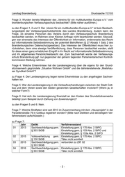 Landtag Brandenburg Drucksache 7/2103 Frage 3: Wurden bereits Mitglieder des „Vereins für ein multikulturelles Europa e.V.“ vom brandenburgischen Verfassungsschutz beobachtet? (Bitte näher ausführen.) zu den Fragen 1, 2 und 3: Der „Verein für ein multikulturelles Europa e.V.“ ist kein Beobach- tungsobjekt der Verfassungsschutzbehörde des Landes Brandenburg. Zudem kann die Frage, ob einzelne Personen des Vereins durch den Verfassungsschutz Brandenburg beobachtet werden, im Rahmen einer Kleinen Anfrage nicht beantwortet werden. Abzuwä- gen war einerseits das Interesse der Öffentlichkeit an Information, andererseits das Recht auf informationelle Selbstbestimmung der potentiell Betroffenen (§ 27 Absatz 1 Satz 2 des Brandenburgischen Datenschutzgesetzes). Das Interesse der Öffentlichkeit muss hier zu- rückstehen, denn eine etwaige Veröffentlichung, dass Personen beobachtet werden, stellt für diese einen ganz erheblichen Eingriff in ihr Recht auf informationelle Selbstbestimmung und ihr allgemeines Persönlichkeitsrecht dar. Zum Sachverhalt würde der Verfassungs- schutz Brandenburg ggf. nur gegenüber der geheim tagenden Parlamentarischen Kontroll- kommission Stellung nehmen. Frage 4: Welche Erkenntnisse hat die Landesregierung über die eigens für den Grund- stückserwerb gegründete „Situative Wohnen GmbH“ und die dahinterstehende „Mietshäu- ser Syndikat GmbH“? zu Frage 4: Der Landesregierung liegen keine Erkenntnisse zu den angefragten Sachver- halten vor. Frage 5: War die Landesregierung in die Verkaufsverhandlungen zwischen der Stadt Cott- bus und dem Verein sowie den beiden genannten Gesellschaften involviert? (Wenn ja, in welcher Form?) Frage 6: Hat sich die Landesregierung finanziell an den Kosten des Grundstückserwerbs beteiligt (zum Beispiel durch Zahlung von Zuwendungen)? zu den Fragen 5 und 6: Nein. Frage 7: Welche Straftaten sind seit 2013 im Zusammenhang mit dem „Hausprojekt“ in der Parzellenstraße 79 in Cottbus registriert worden? (Bitte nach Delikten und derzeitigem Ver- fahrensstand aufschlüsseln.) zu Frage 7: Jahr Delikt Verfahrensstand 01 2013 Sachbeschädigung gem. Einstellung gem. § 170 Abs. 2 StPO, § 303 StGB Einstellung gem. § 153 Abs. 2 StPO und Einstellung gem. § 153a Abs. 2 StPO 02 2015 Volksverhetzung gem. Einstellung gem. § 170 Abs. 2 StPO, § 130 StGB Täter nicht ermittelt 03 2015 Sachbeschädigung gem. verbunden zu Ziff. 02 § 303 StGB 04 2016 Sachbeschädigung gem. Einstellung gem. § 170 Abs. 2 StPO, § 303 StGB Täter nicht ermittelt -2-